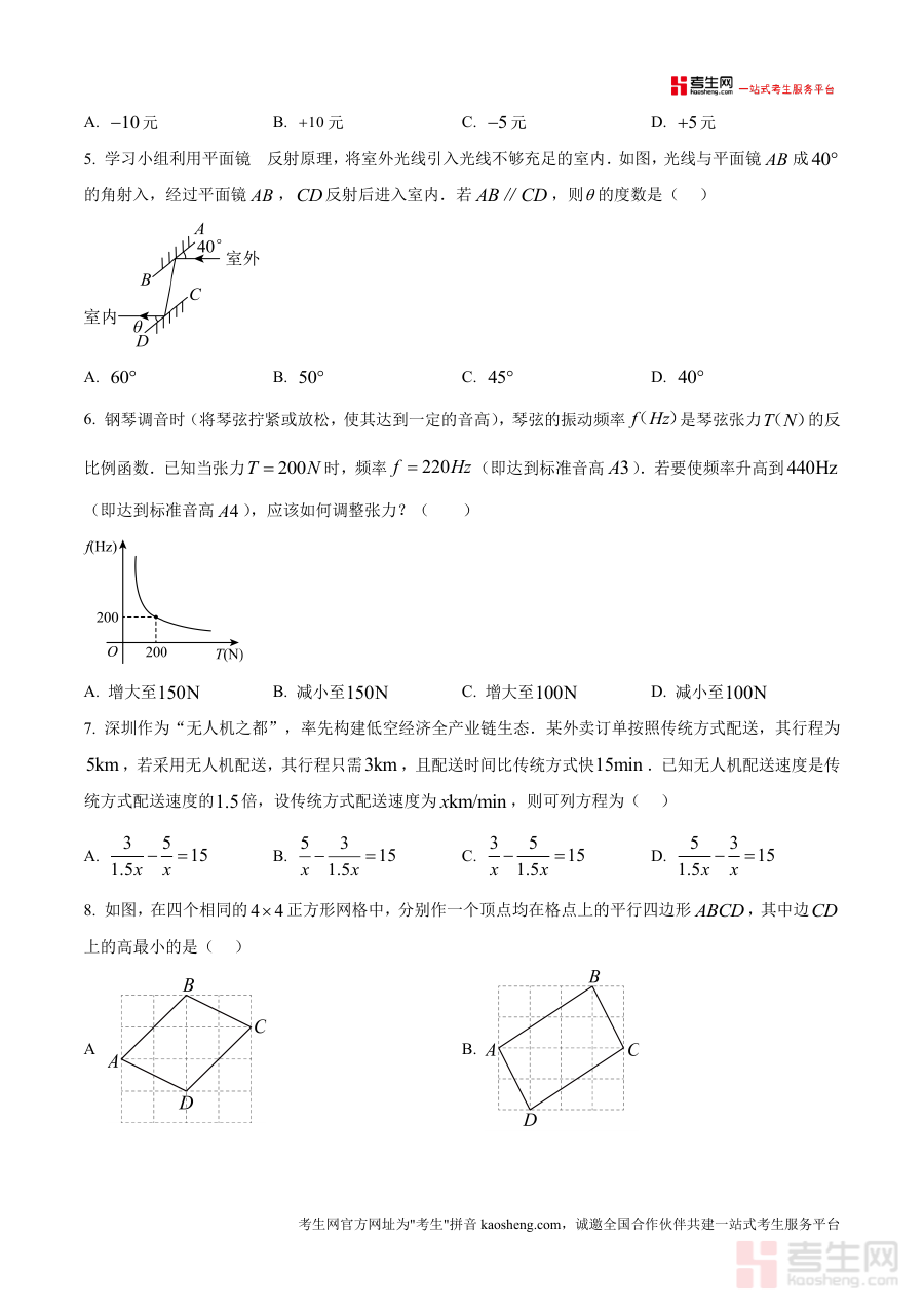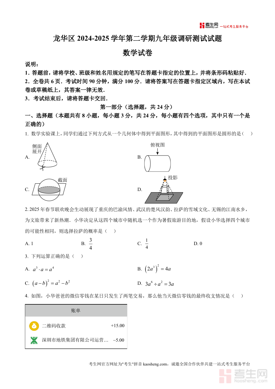 《精品解析:2025年广东省深圳市龙华区中考二模数学测试卷(原卷版).docx》是一份针对2025年广东省深圳市龙华区九年级学生中考前第二次模拟考试设计的数学备考资料,其对应的考试为龙华区2024-2025学年第二学期九年级调研测试,属于中考备考过程中的重要阶段性检测资料。该资料严格遵循当地中考数学考试规范编制,包含考试说明中的答题规则、试卷结构等基础信息,能真实反映该地区中考二模数学考试的基本形式与要求。