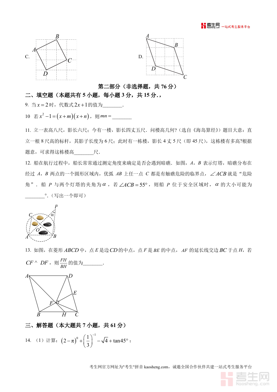 这份原卷版资料主要用于帮助学生熟悉中考二模考试框架、答题流程及时间安排,通过实际测试卷让学生进行自我检测或模拟练习,了解自身备考阶段的知识掌握情况与应试能力水平;同时可为教师提供真实阶段检测样本,辅助教师开展学情分析,调整后续复习计划与教学策略,确保备考工作更具针对性与有效性。