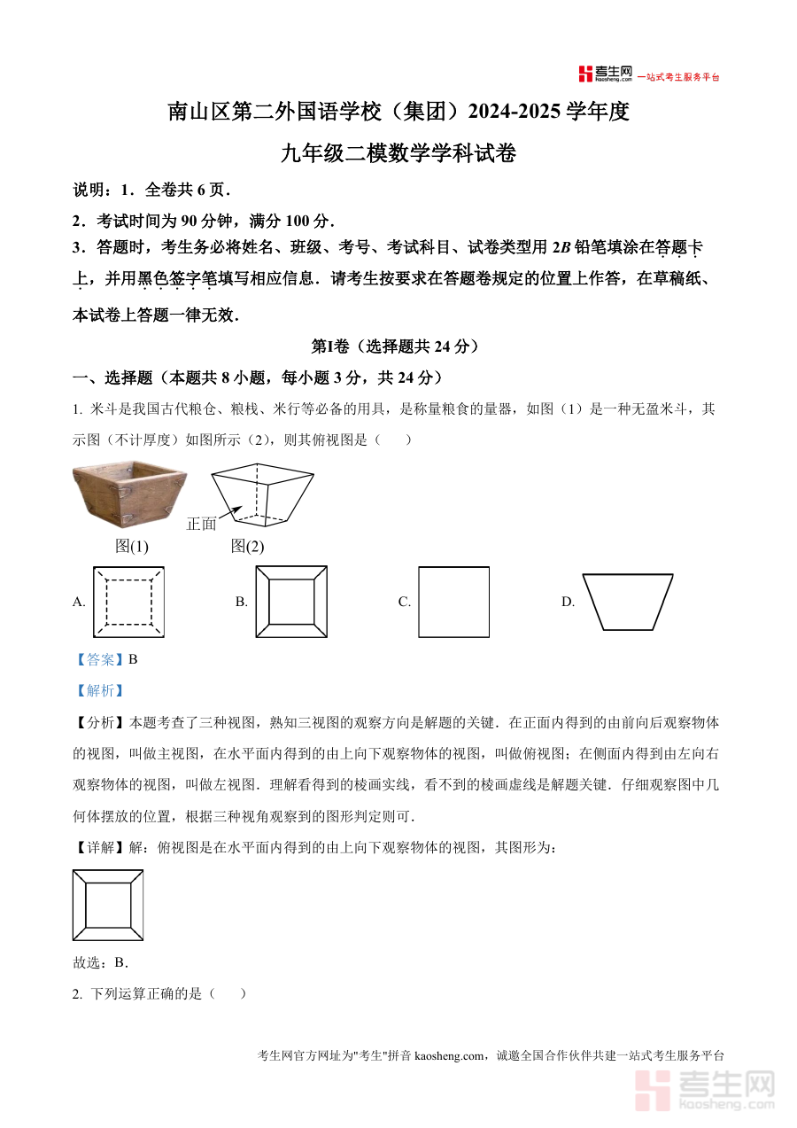 精品解析广东省深圳市南山区第二外国语学校集团2024-2025学年九年级中考二模数学试卷解析版docx。是一份针对特定阶段考试的备考资料核心围绕考试的时间。地区与用途展开为考生提供阶段检测与备考参考这份资料。的核心用途在于帮助对应年级的学生明确学习重点通过阶。段考试诊断学情为后。