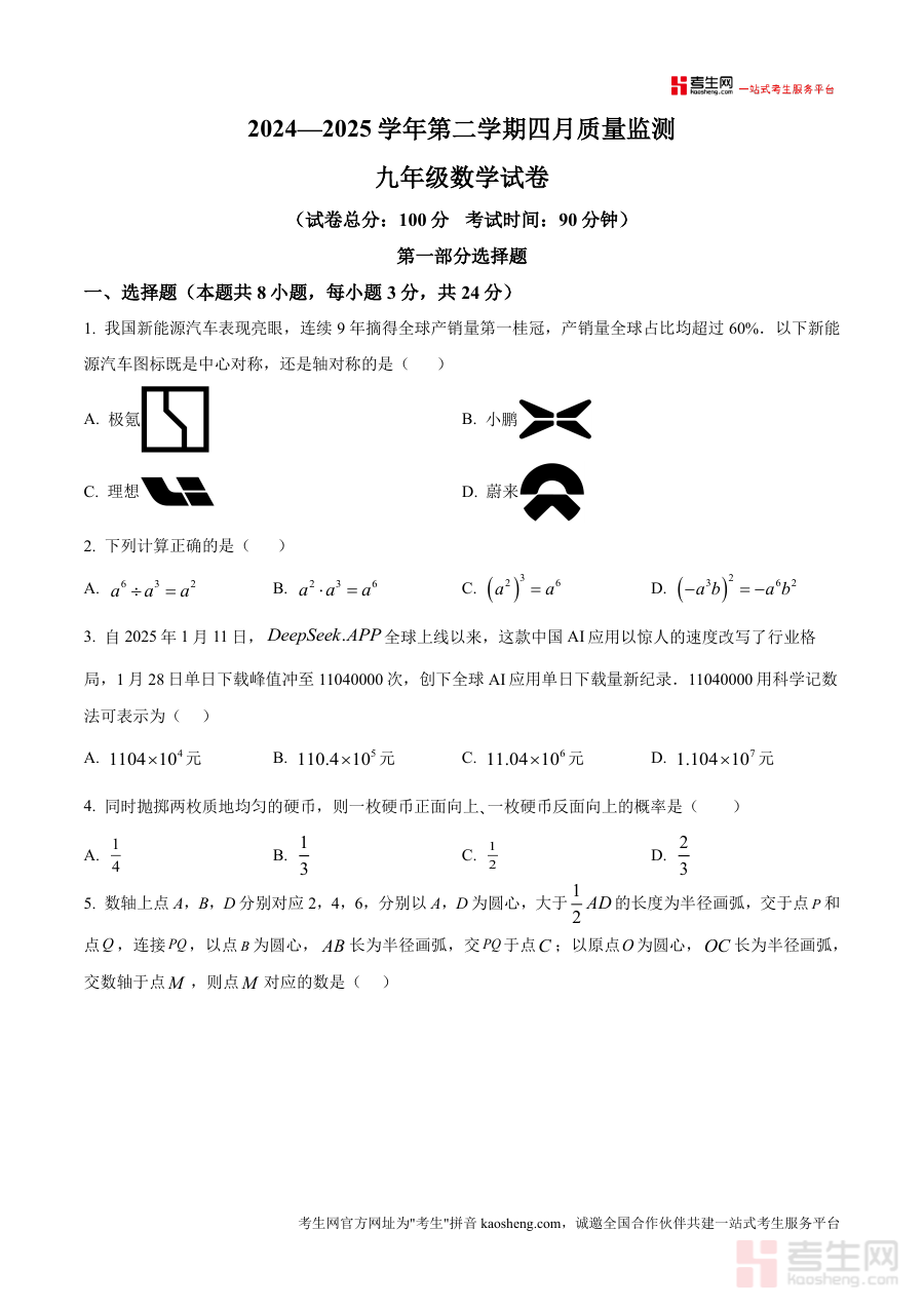 《精品解析:广东省深圳市南山外国语学校(集团) 2024-2025学年九年级数学四月二次模拟试题(原卷版)docx》是一份针对广东省深圳市南山外国语学校(集团)2024-2025学年九年级学生设计的数学学科四月二次模拟考试原卷资料属于该学年第二学期四月质量监测范畴该资料严格贴合学校教学进度与考试要求为学生提供了与实际考试形式一致的练习载体帮助学生提前熟悉考试流程与题型结构不涉及具体知识点仅作为备考基础资料使用
