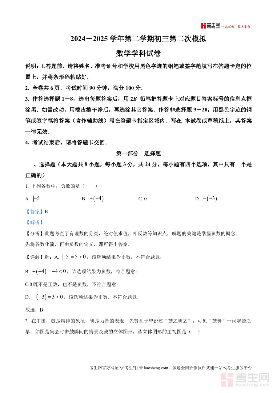 《精品解析:广东省深圳市罗湖区部分学校2024-2025学年下学期九年级第二次模拟数学试题(解析版)》是一份针对广东省深圳市罗湖区部分学校九年级学生在2024-2025学年下学期开展第二次数学模拟考试编制的专业备考资料。该资料依托区域内特定学校群体组织实施的阶段性模拟测试背景,紧密贴合九年级下学期数学学科阶段性学习成果检验的实际需求,为使用者提供对应考试内容的系统性解析支持。
