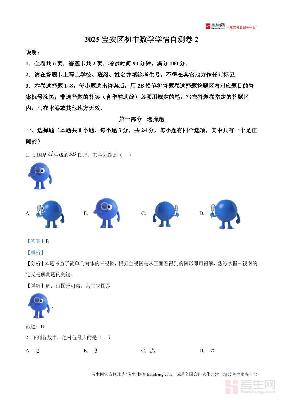 精品解析2025年广东省深圳市宝安区初中数学学情自。测卷2解析版docx是一份针对特定阶段考试的备考资。料核心围绕考试的时间地区与用途展开为考生提供阶段检。测与备考参考这份资料的核心用途在于帮助对应年级的学。生明确学习重点通过阶段考试诊断学情为后续复习规划提。供依据无论是开学摸底阶段检测还是考前。