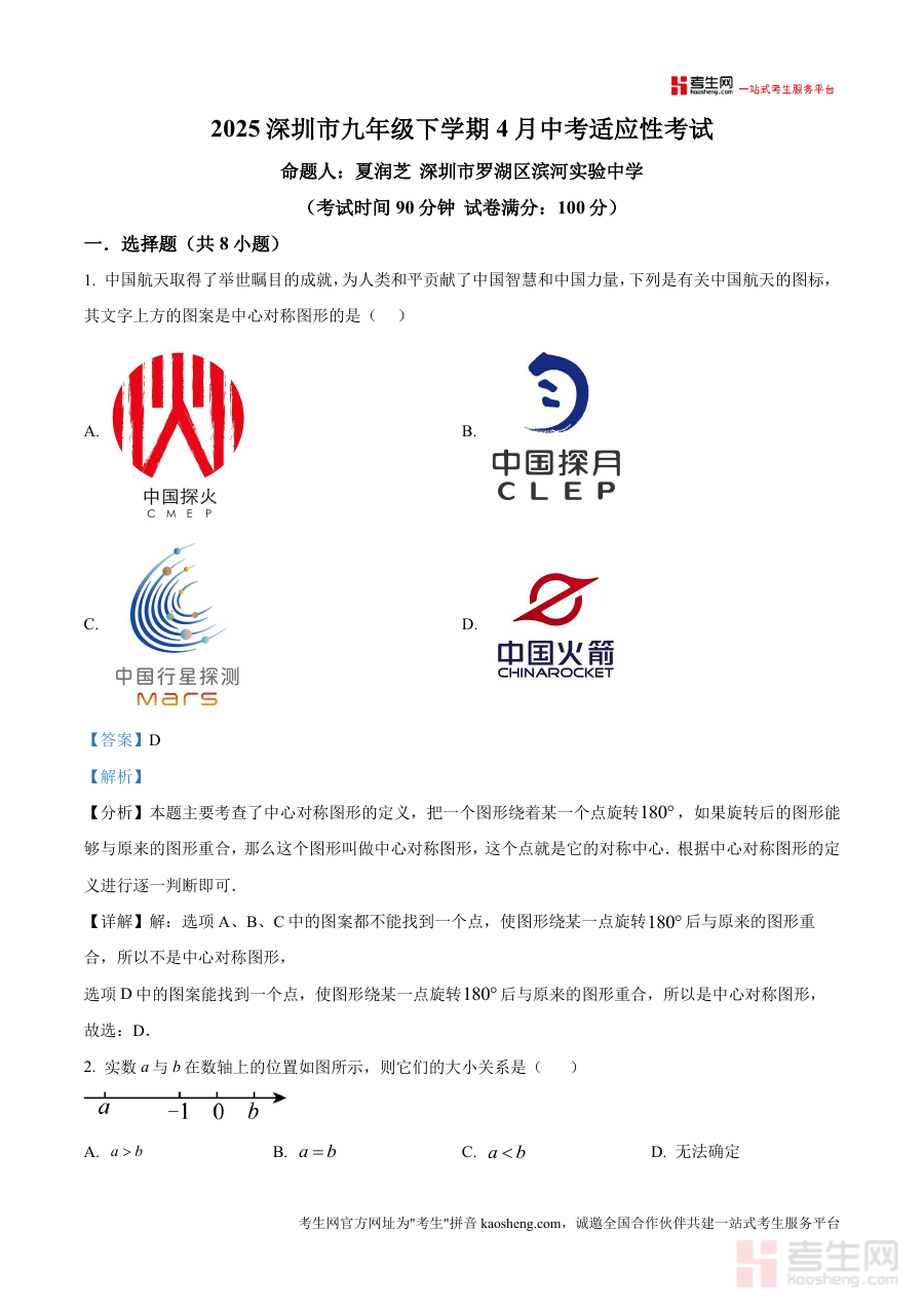 精品解析2025年广东省深圳市罗湖区部分学校九年级。下学期4月中考适应性考试解析版docx是一份针对特。定阶段考试的备考资料核心围绕考试的时间地区与用途展。开为考生提供阶段检测与备考参考这份资料的核心用途在。于帮助对应年级的学生明确学习重点通过阶段考试诊断学。情为后续复习规划提供依据无论是开学摸底阶段。