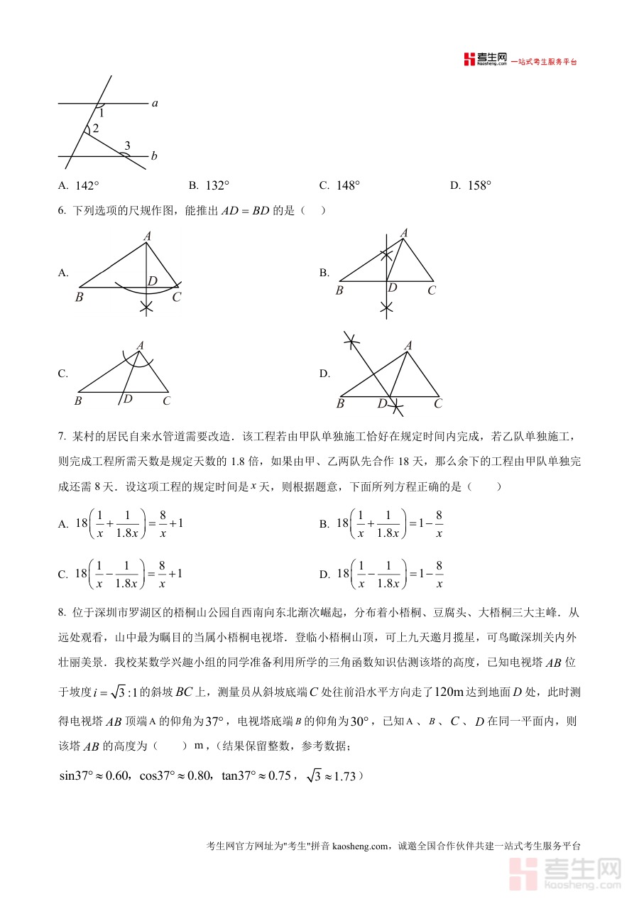 该资料适用于广东省深圳市坪山区部分学校及其他处于同备考阶段、需要进行中考适应性训练的九年级学生,也适用于从事初中数学教学及中考备考指导工作的教师群体。作为中考备考过程中的阶段性检测工具,它能够有效帮助使用者明确自身备考现状,为后续学习计划与教学安排提供数据支持,具有较强的实用价值。