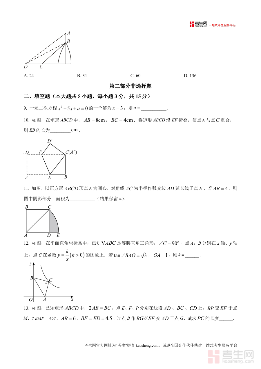 这份原卷资料主要用于九年级学生提前熟悉中考适应性考试的试卷结构、考试时长及分值分布情况,帮助他们在正式考试前适应考试节奏与形式;同时也可作为教师开展教学诊断与备考规划的参考依据,辅助教师了解学生当前知识掌握状况与应试能力水平,以便调整后续教学策略与备考重点。