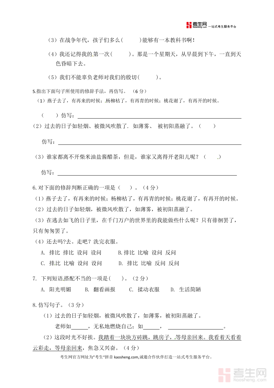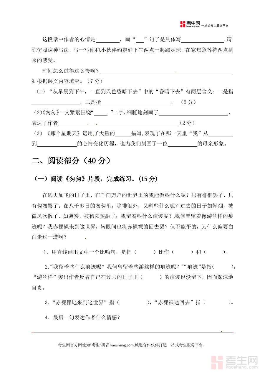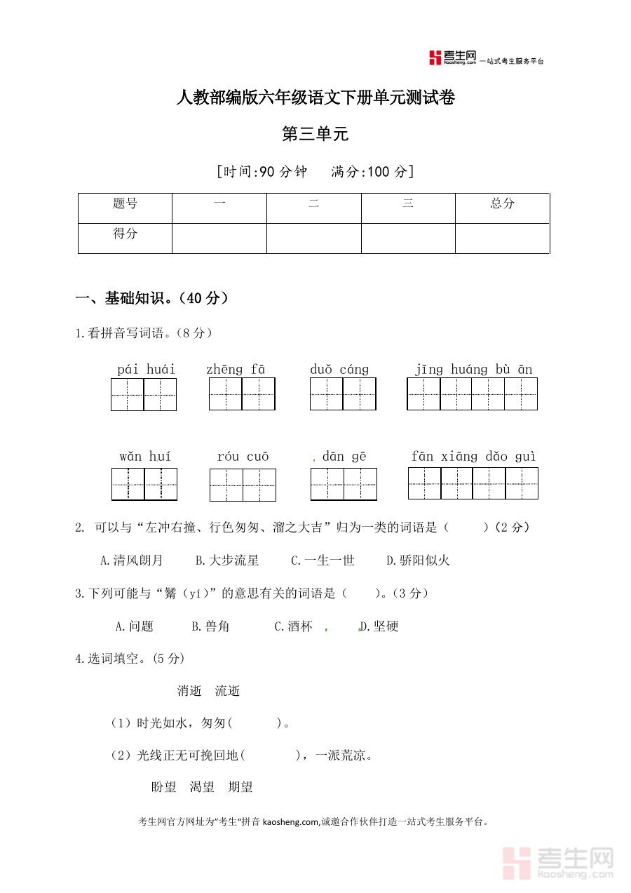 本资料适用于使用人教部编版教材的小学六年级学生、语文教师以及学生家长群体,其作为单元学习后的检测资料,具有清晰的阶段指向性,能够有效支持单元学习效果的评估与巩固,是单元学习过程中重要的辅助资料之一。