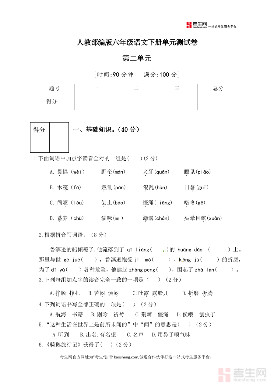 人教部编版六年级语文下册第二单元测试卷1有答案do。cx是一份针对特定阶段考试的备考资料核心围绕考试的。时间地区与用途展开为考生提供阶段检测与备考参考这份。资料的核心用途在于帮助对应年级的学生明确学习重点通。