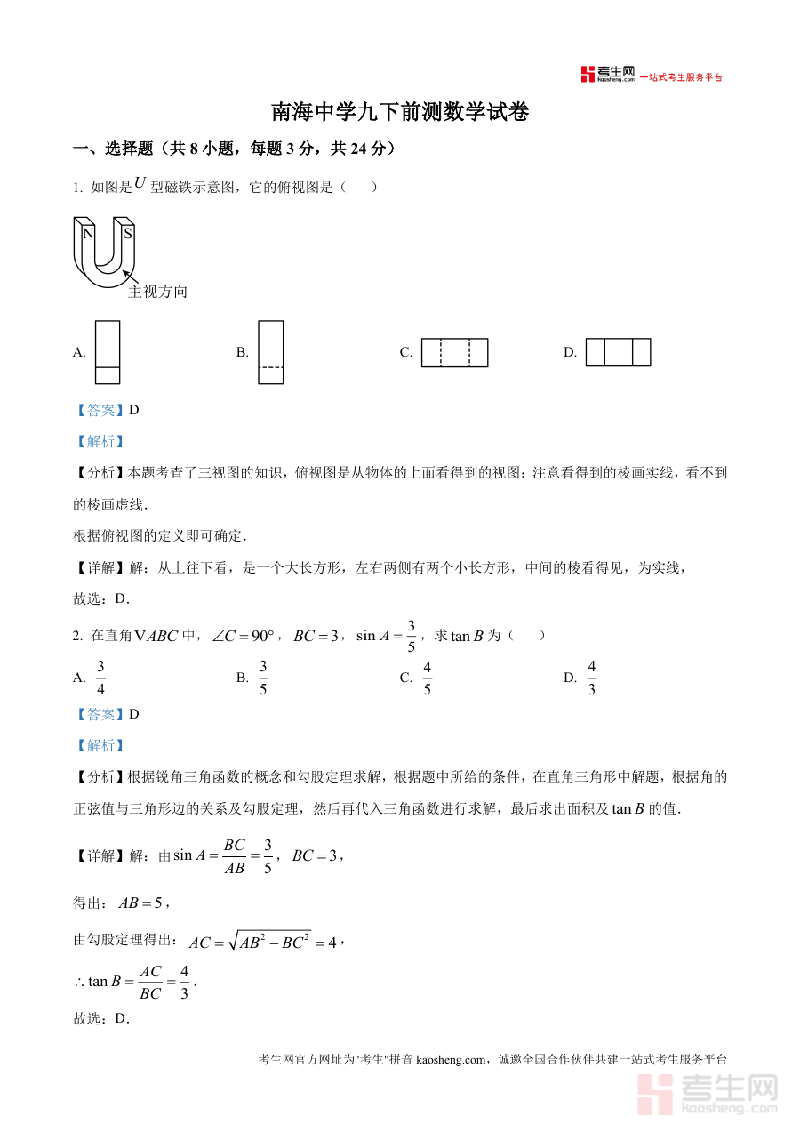 精品解析广东省深圳市南山实验教育集团南海中学202。42025学年九年级下学期开学考数学试题解析版do。cx是一份针对特定阶段考试的备考资料核心围绕考试的。时间地区与用途展开为考生提供阶段检测与备考参考这份。资料的核心用途在于帮助对应年级的学生明确学习重点通。过阶段考试诊断学情为。