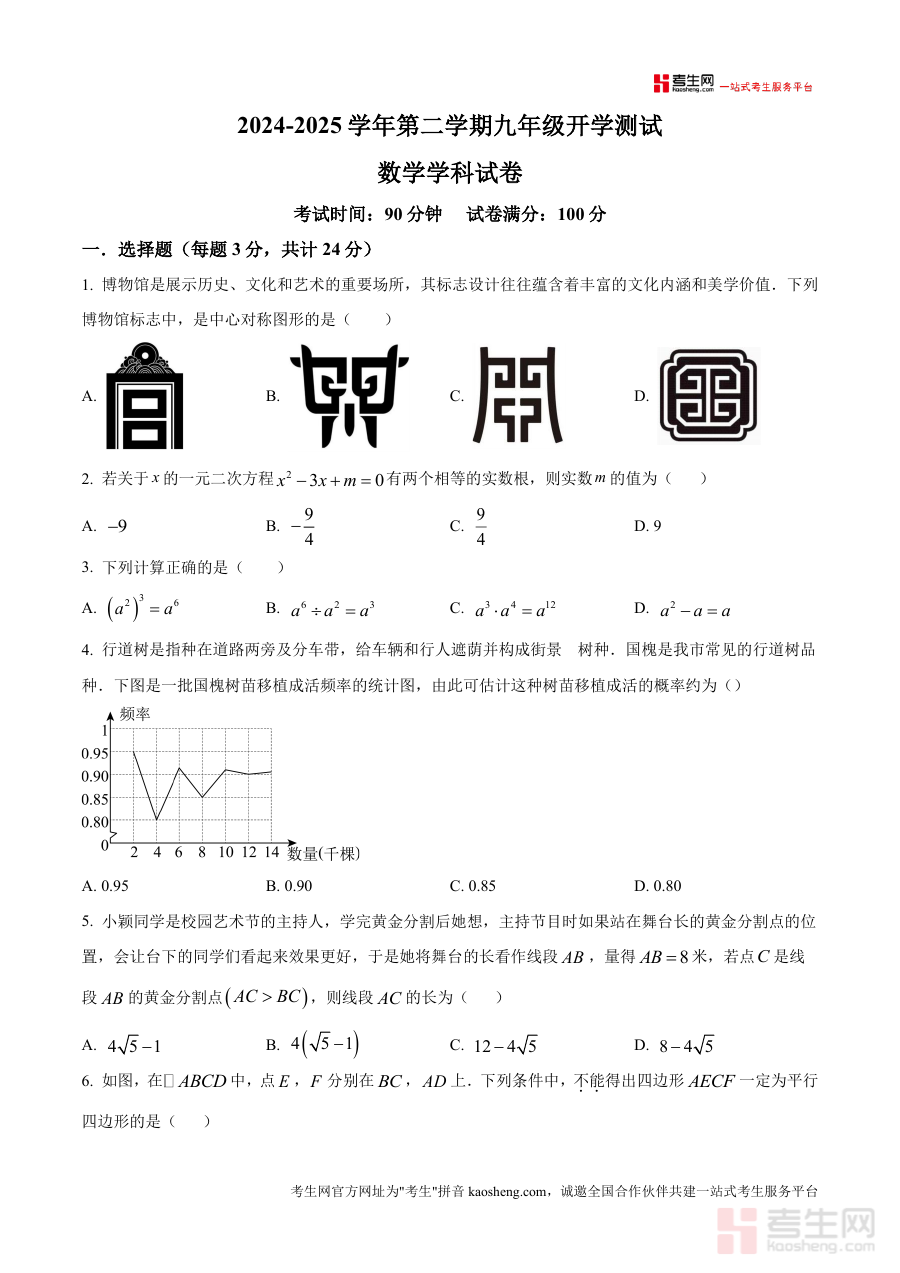 该资料适用于广东省深圳市深圳实验学校九年级在读学生及相关数学教师、备考辅导人员。作为开学考试原卷,它具有显著阶段检测价值:学生可借此熟悉考试结构与时间安排,提升应试适应能力;教师能通过分析该试卷了解学生知识薄弱环节,优化教学策略;辅导人员则可依托这份资料为学生提供更具针对性的辅导服务,助力师生高效备考并取得理想成绩。