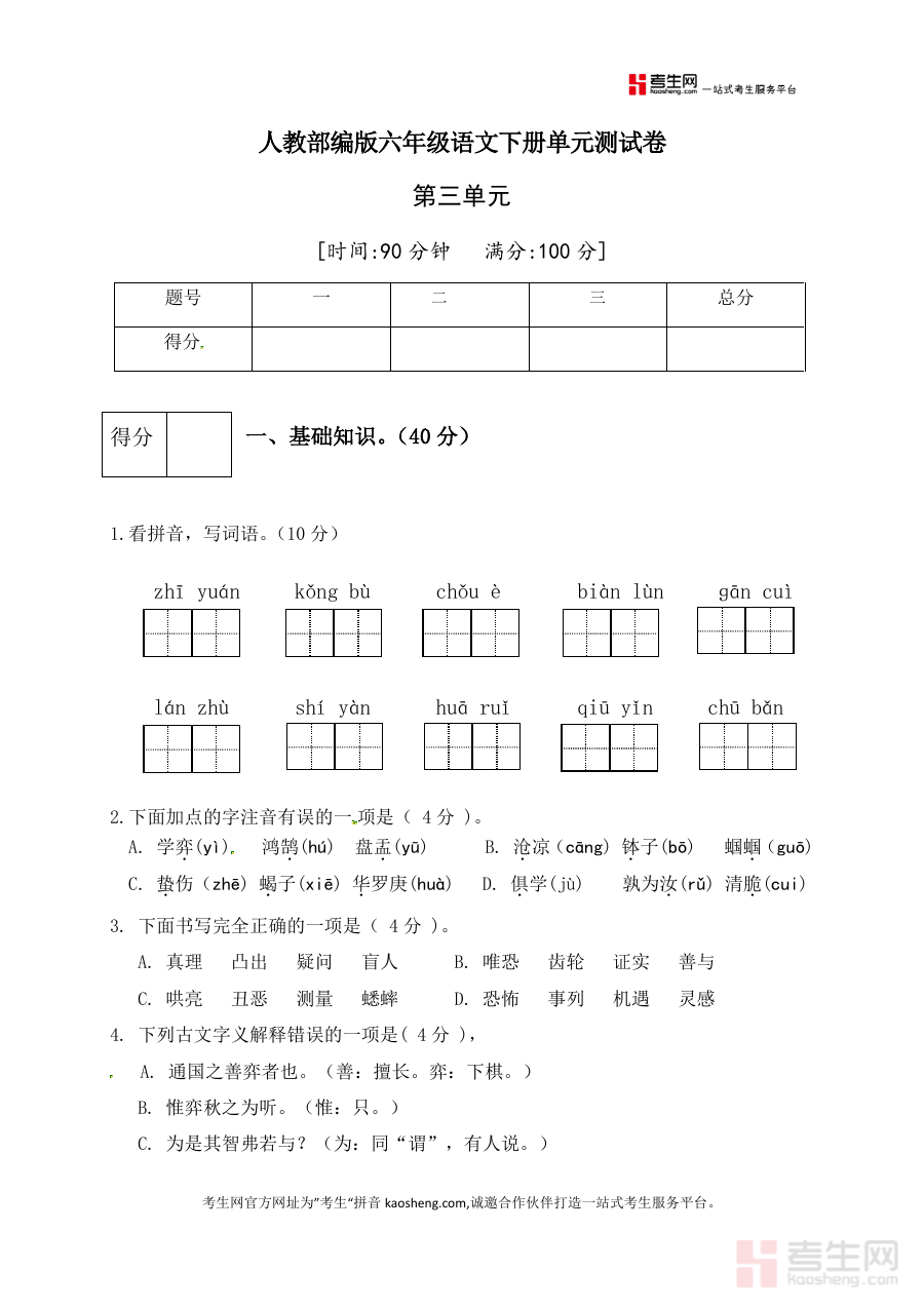 《人教部编版六年级语文下册第五单元测试卷2(有答案)》是一份依据人教部编版教材编写、针对六年级语文下册第五单元知识内容设计的标准化检测资料,包含完整试题及对应参考答案旨在为单元知识评估提供规范工具,助力师生开展有效的阶段性检测工作符合单元教学检测的基本需求