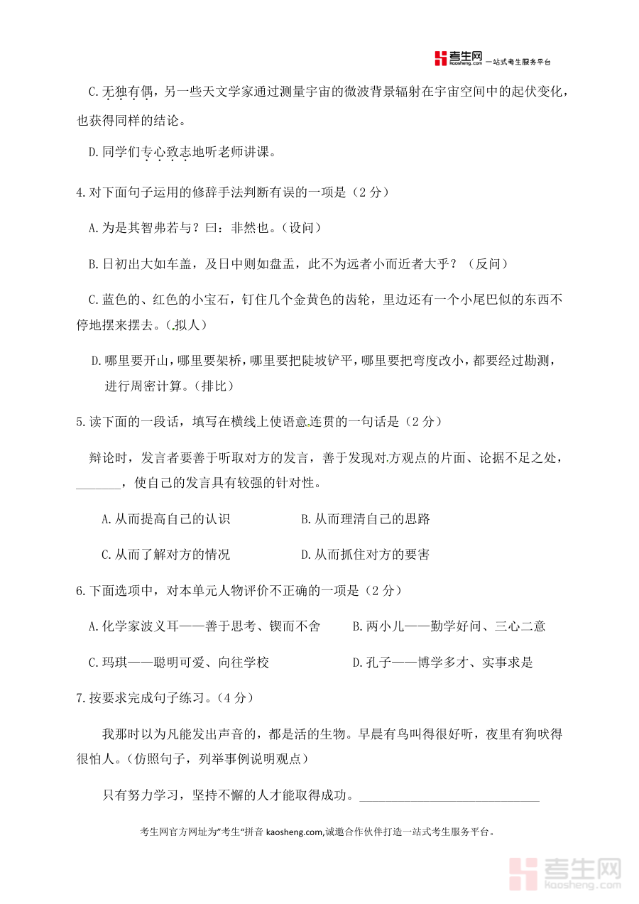 《人教部编版六年级语文下册第五单元测试卷4(有答案)》是一份针对人教部编版六年级语文下册第五单元知识内容编制而成的单元测试资料,旨在通过标准化测试形式考察学习者对该单元相关内容的掌握情况与学习效果,属于单元学习过程中阶段性评价常用资料类型之一。