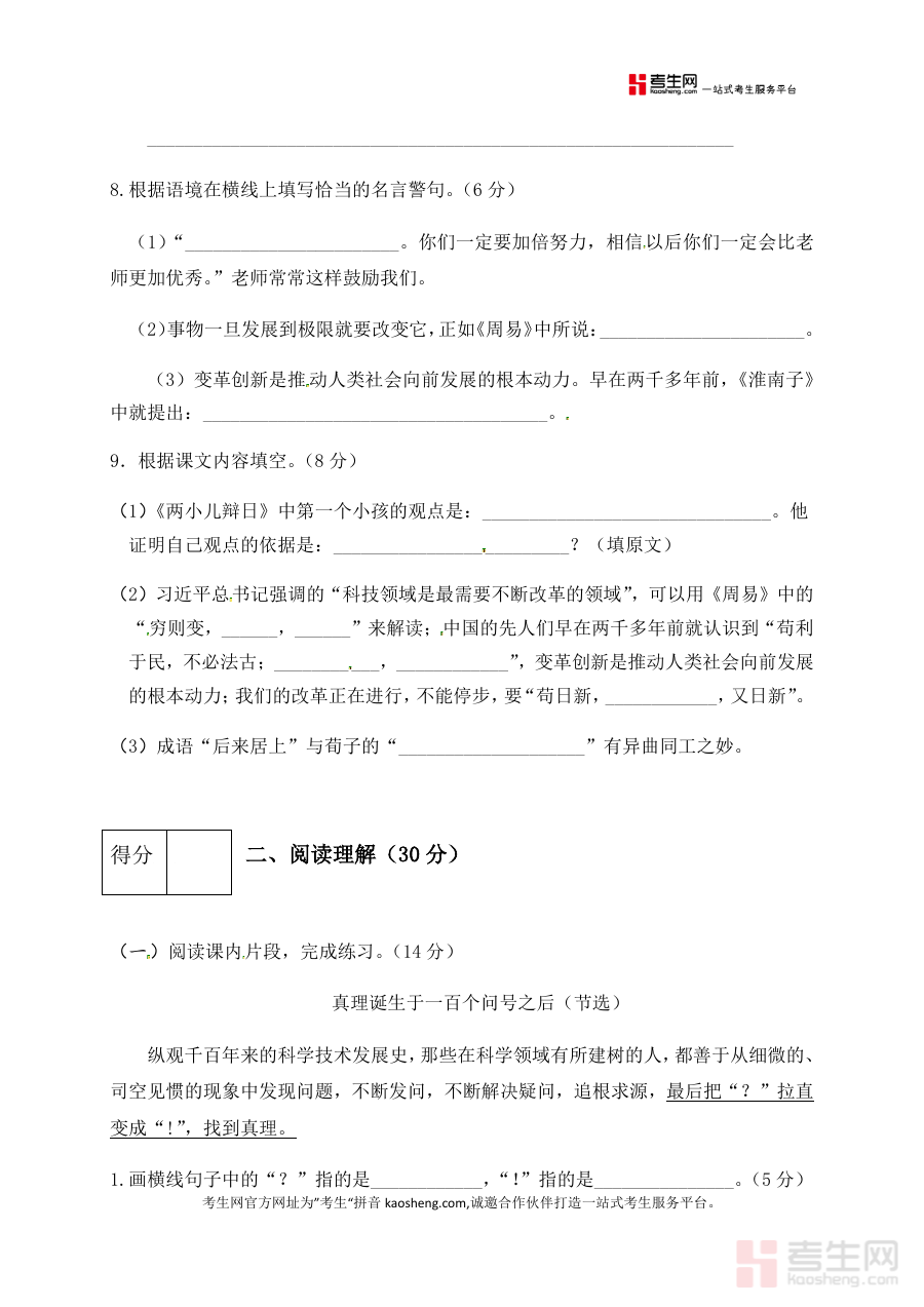 该资料可用于六年级学生完成第五单元学习后的自我检测以明确知识薄弱点,也可作为语文教师开展单元教学评估及调整教学策略参考工具;附带参考答案能帮助使用者快速核对测试结果,提升检测与反馈效率,便于及时调整后续学习或教学计划。