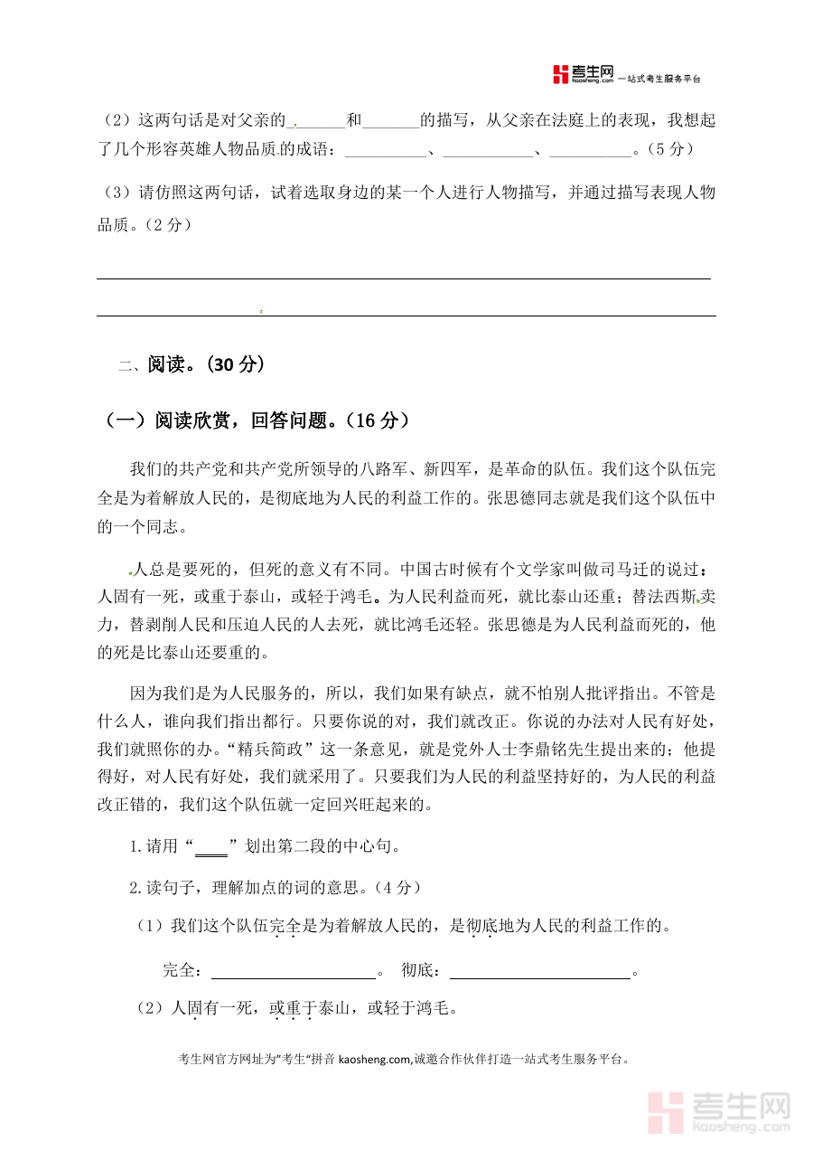 《人教部编版六年级语文下册第四单元测试卷3(有答案)》是一份适配人教部编版教材体系、针对六年级语文下册第四单元学习内容的单元测试资料,并包含完整参考答案。作为2026年适用的阶段性检测工具,它对应该学段语文下册第四单元教学进度与内容范围,是单元学习效果评估的专用材料之一,契合教材单元教学目标导向下的检测需求。