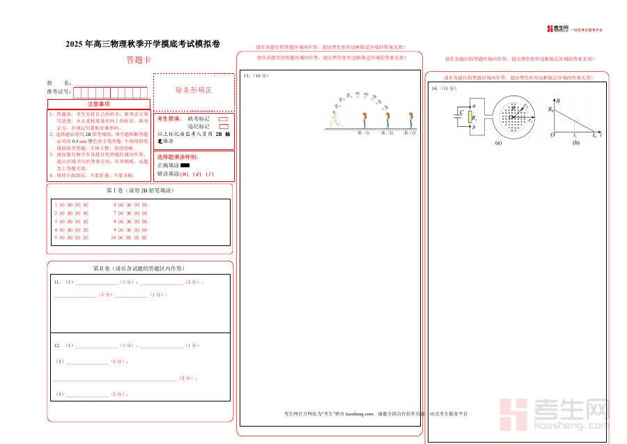 《物理(答题卡)A3版(黑吉辽蒙专用).docx》是一份适配2025年黑吉辽蒙四省(区)高三物理秋季开学摸底考试模拟卷的专用答题卡资料。该资料针对特定区域的高三物理摸底考试场景设计,其格式和规格严格匹配对应模拟卷的答题要求,为考生提供与实际考试场景一致的答题卡使用体验。作为摸底考试准备环节的重要组成部分,它旨在帮助考生提前熟悉考试的答题载体形式,确保在正式考试中能够高效、规范地完成答题操作。