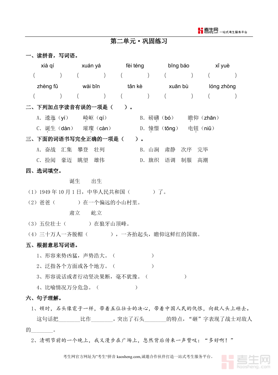 《第二单元(知识盘点+单元测试)—部编版六年级上册(含答案).docx》是一份针对部编版六年级上册语文第二单元设计的综合性学习资料,包含知识盘点与单元测试两部分内容,并附完整参考答案。该资料符合2026年义务教育阶段语文课程标准相关要求,旨在为使用者提供系统的单元知识梳理与学习效果检测工具。