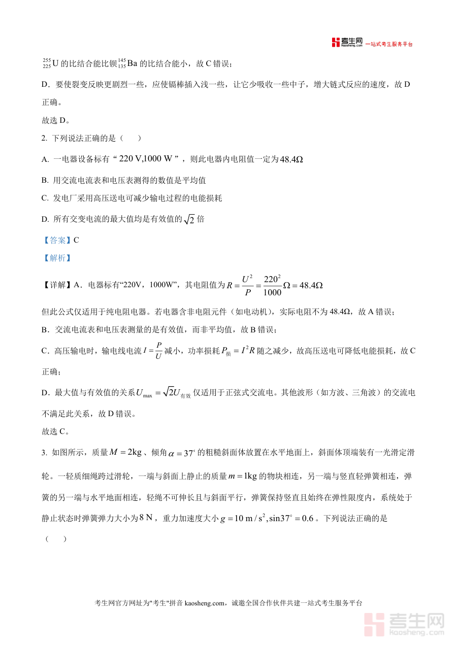 这份资料主要用途是辅助高三学生进行开学阶段物理学科学情诊断与备考规划制定同时可为物理教师提供教学参考依据。通过对本次调研考试试题及解析内容学习学生可了解自身物理学科知识掌握优势不足明确后续学习重点;教师可根据试题及解析内容调整教学策略优化教学计划确保教学内容贴合学生实际需求提升教学效果,帮助学生更好适应高三阶段物理学习节奏为高考备考奠定坚实基础。