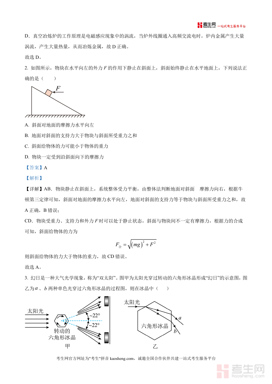 这份资料主要用于高三学生完成八月月考后对物理考试情况进行系统复盘与分析,辅助教师开展学情诊断及后续备考规划工作,通过提供联考物理试题及解析帮助使用者了解本次考试物理科目的考查形式与结构,但不涉及具体知识点拓展或题型预测等超出文件元信息范围的内容,保持资料描述严谨性与准确性.