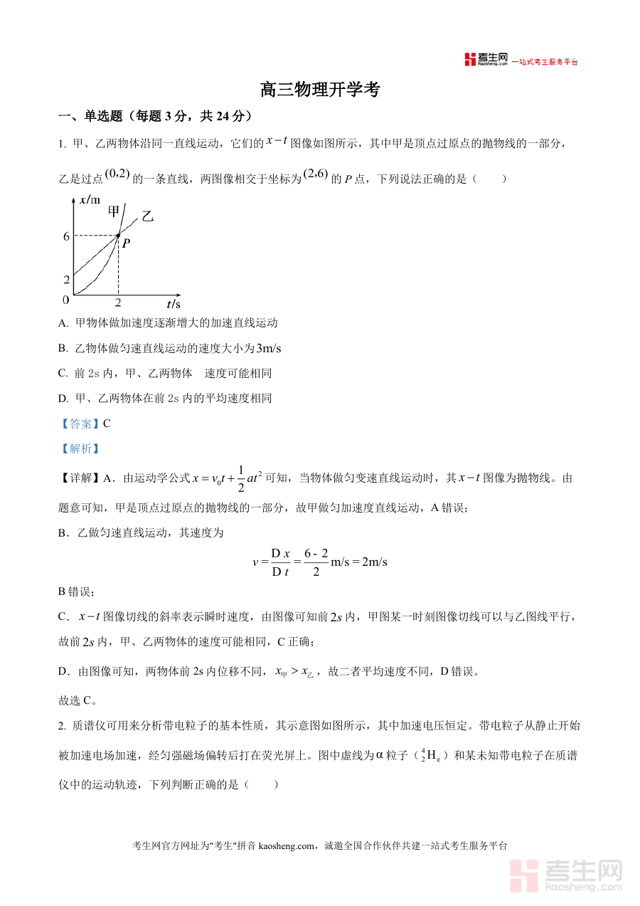 《精品解析:山东省实验中学2025-2026学年高三上学期8月开学测物理试题(解析版)》是一份针对山东省实验中学2025-2026学年高三年级上学期8月开学物理测试编制而成解析类备考资料。该资料依托学校开学阶段组织实施物理测试场景,聚焦高三学生开学初期物理学科检测需求,基于文件名及元信息呈现其属性,不涉及具体知识点或题型编造,仅为相关群体提供对应试题及解析内容支持。