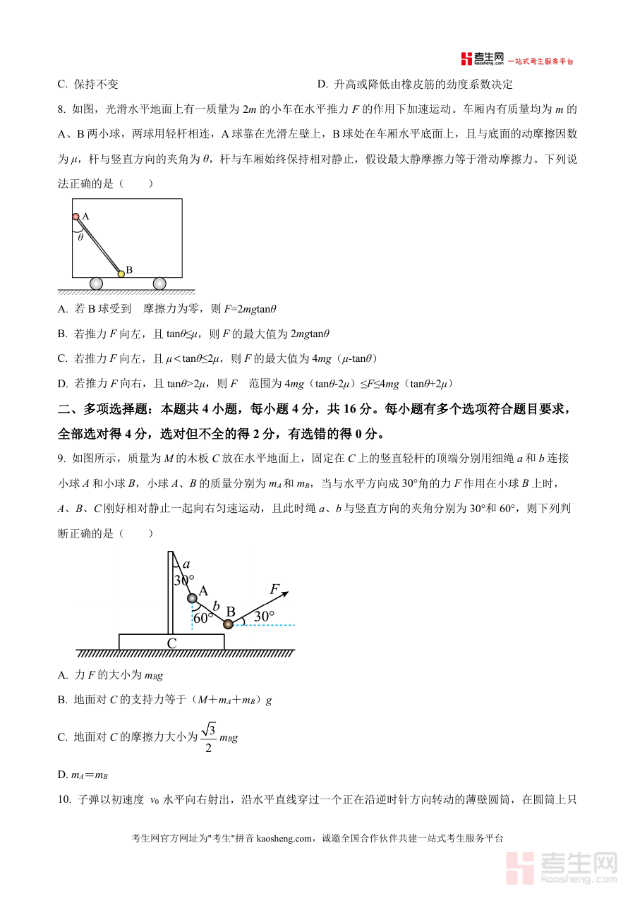 这份资料主要用途包括:高三学生可借助它进行开学前物理学科知识掌握情况自我诊断以明确开学后备考方向;教师可将其用于评估学生开学初期物理学习状态辅助制定针对性教学计划;同时它也能为备考辅导人员提供该学校高三开学考试物理试题原始参考框架帮助了解考试题型分布与考查范围,但不涉及具体知识点解析或答题策略指导等额外内容。