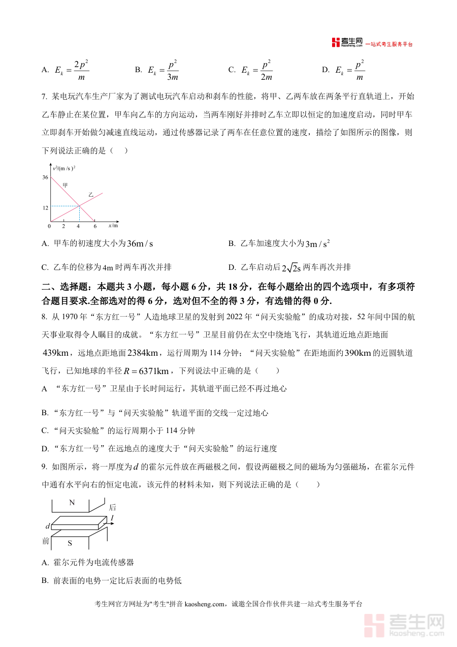 这份原卷版物理试题主要用途在于帮助高三学生在开学初期快速熟悉本校物理学科开学摸底考试的试卷构成模式、答题操作规范及整体考查方向,便于学生提前适应考试节奏与形式特点,做好针对性的备考准备工作;同时也为学校物理学科教师提供原始试卷依据,辅助教师开展学情诊断分析工作,全面了解学生开学初期物理知识掌握状态,从而更精准地制定后续教学计划与复习策略,切实提升教学与备考的效率和质量水平。
