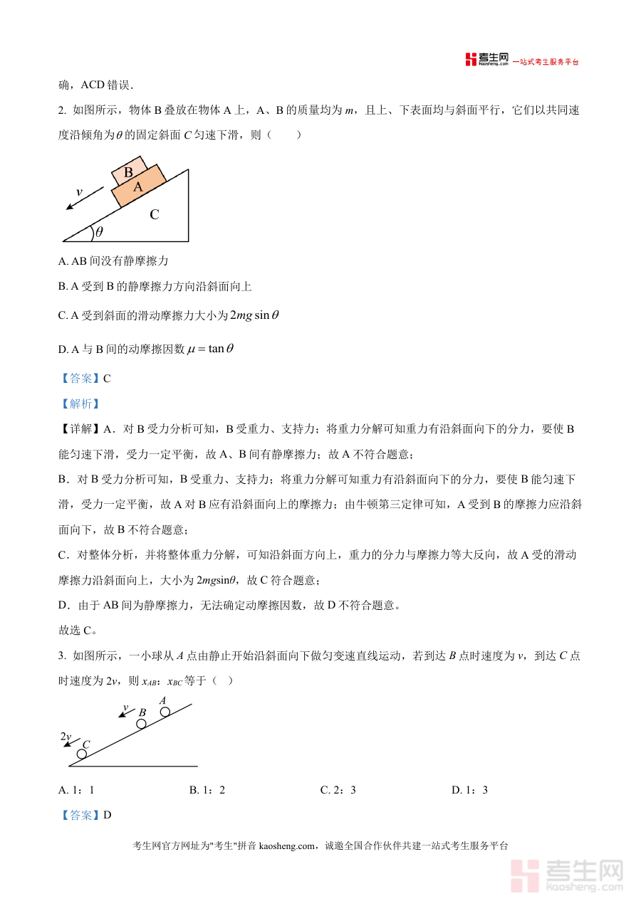 这份资料主要用于辅助高三学生完成开学初期物理学科学习情况的自我诊断,帮助其快速了解自身当前阶段物理知识掌握程度及能力短板;同时为物理教师提供学情分析的工具支撑,助力教师精准把握学生开学后的学习状态,优化后续教学计划与复习安排;此外,配套解析可辅助学生自主核对答案并理解解题逻辑,提升学习效率与自主学习能力。