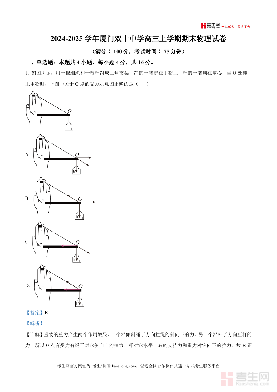 《精品解析:福建省厦门双十中学2025-2026学年高三上学期开学物理试题(解析版).docx》是一份针对福建省厦门双十中学2025-2026学年高三上学期开学物理考试编制而成备考资料,明确对应该校高三年级开学阶段开展物理学科检测场景,包含完整试题及配套解析内容。该资料紧密贴合学校高三开学检测需求,为相关群体提供直接关联考试的数据支持与参考依据。