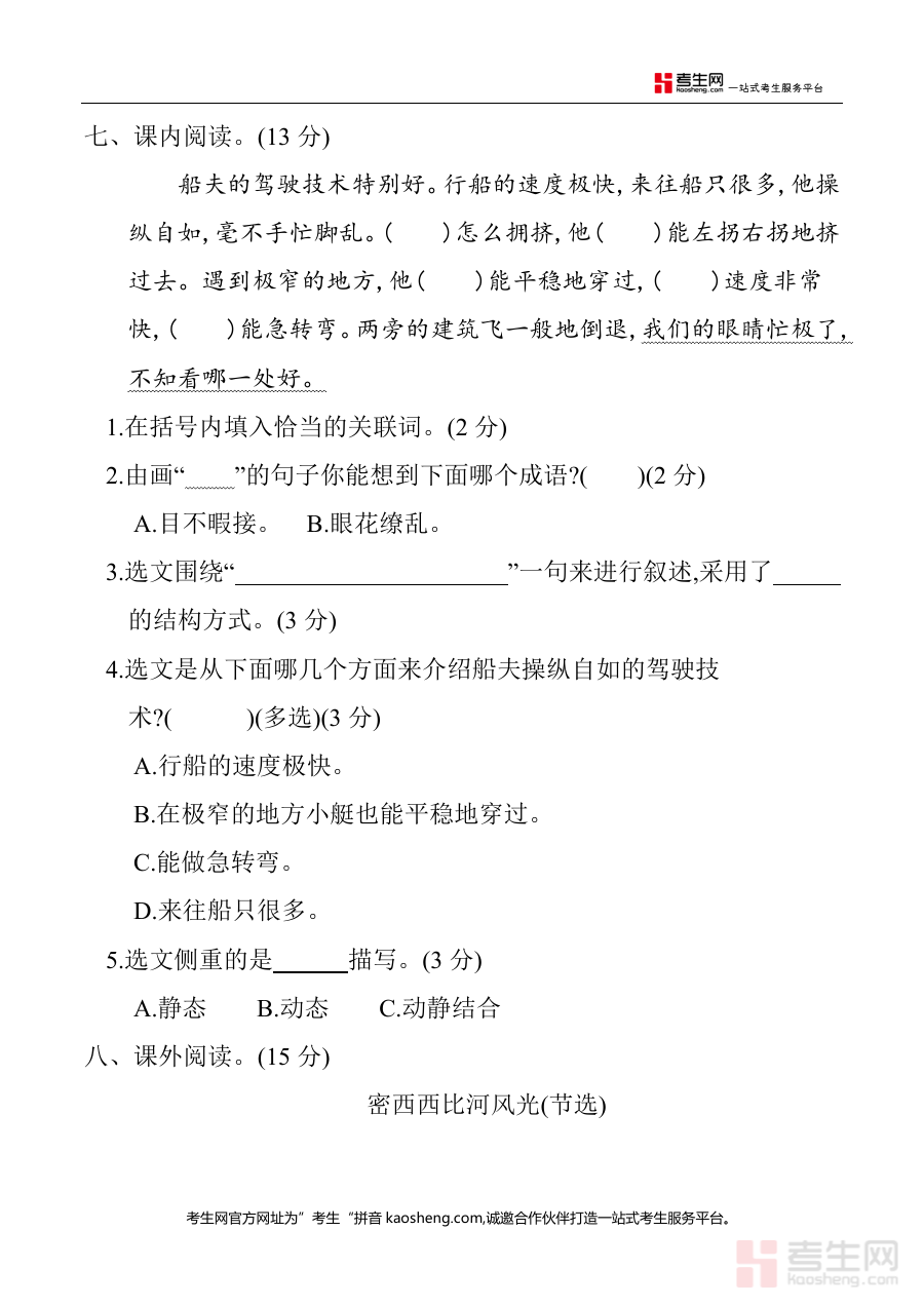 《五年级下册第七单元单元测试(含答案)(部编版).docx》是一份面向使用部编版教材的五年级学生的第七单元阶段性检测资料,包含完整测试卷及配套答案,属于单元学习成果检验类备考材料,符合2026年小学阶段语文教学阶段评估需求,为使用者提供规范的单元测试场景与反馈依据。