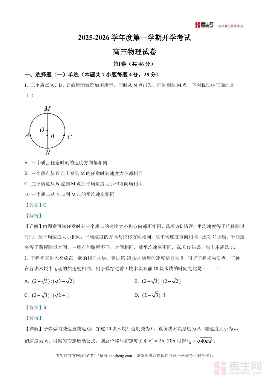 这份资料 的用途主要在于辅助使用者了解该次开学考试 的考查形式及结果分析,为高三学生提供开学初期物理学科学习情况 的检测反馈依据,同时也可为备考辅导人员提供参考,帮助明确后续学习重点与调整备考策略。所有用途描述均基于资料类型及考试性质合理推导,未添加任何虚构 的具体内容或细节。