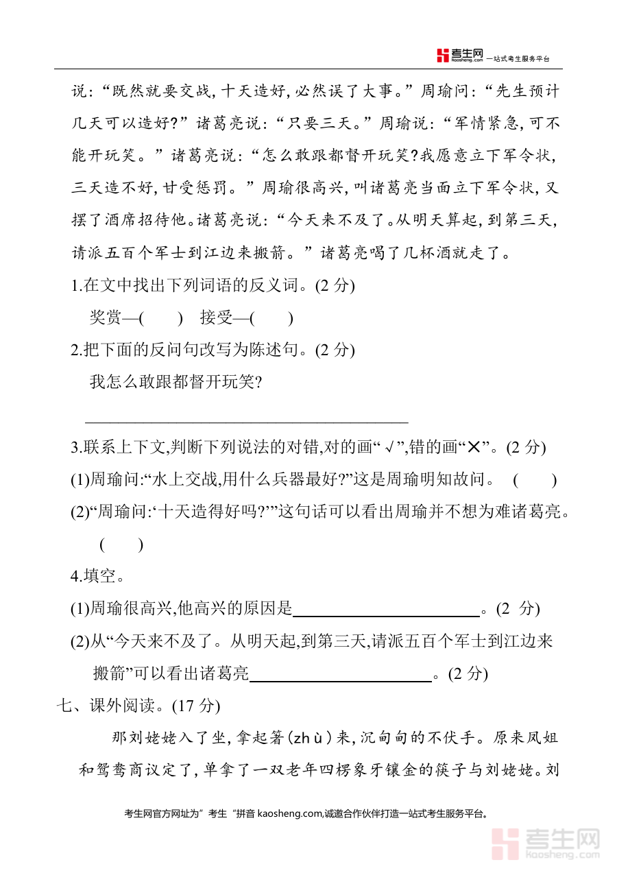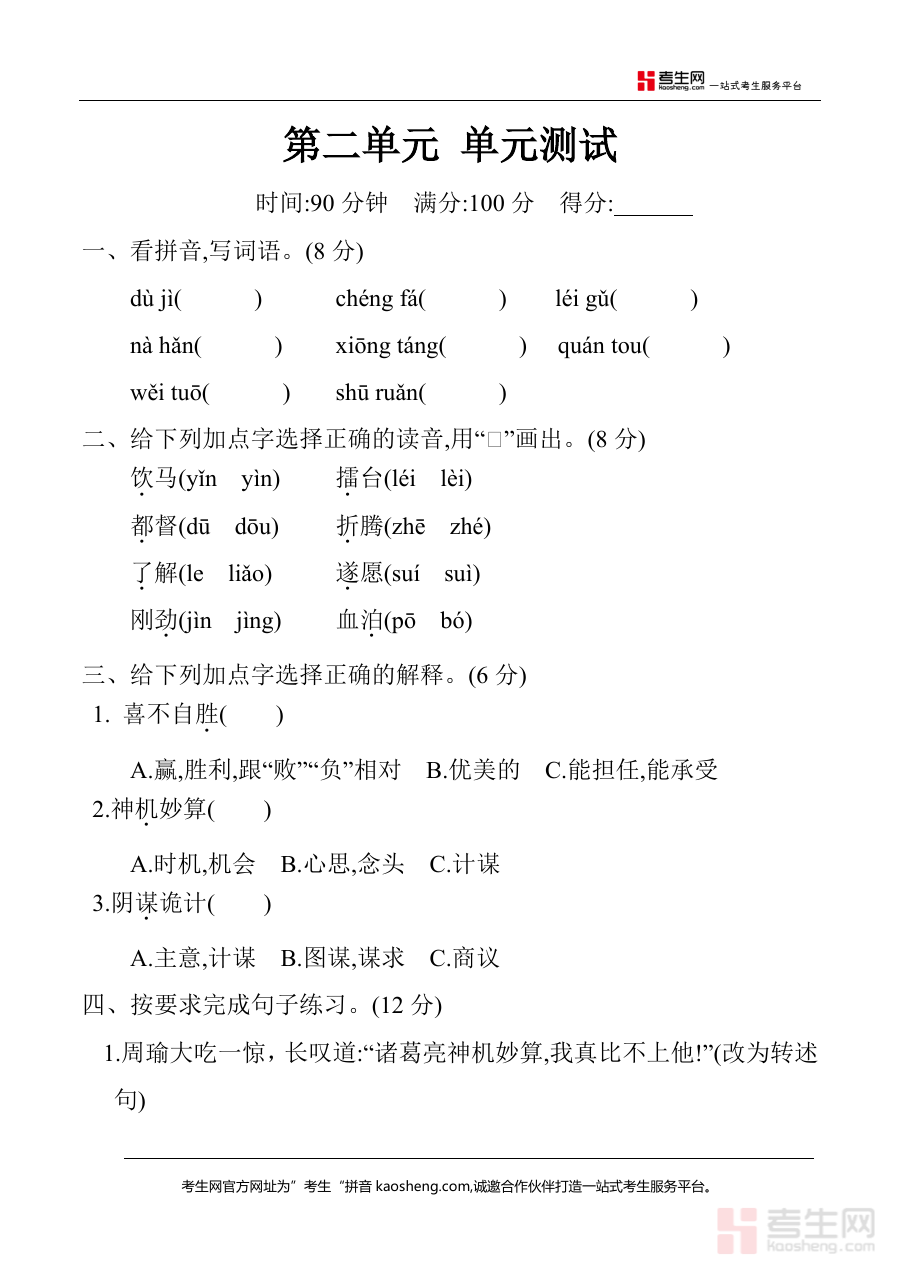 《五年级下册 第二单元 单元测试(含答案)(部编版).docx》是一份针对2026年使用部编版教材的五年级学生设计的第二单元阶段性检测资料,属于单元测试类标准化备考资源,包含完整测试卷内容及对应详细答案,完全贴合部编版五年级下册教材第二单元教学大纲与核心要求,是单元学习结束后进行知识检测的规范工具。