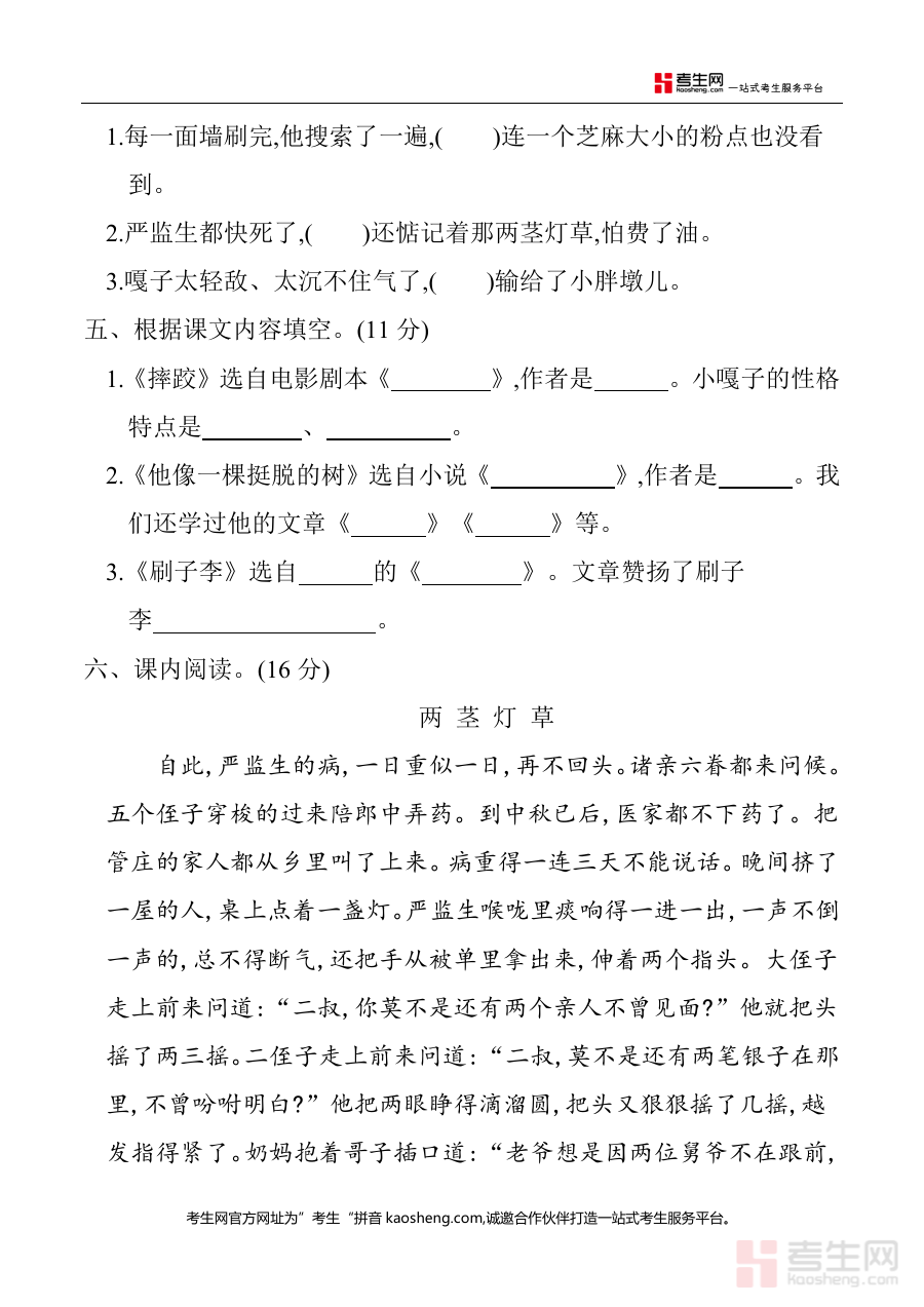 《五年级下册 第五单元 单元测试(含答案)(部编版).docx》是一份针对2026年部编版五年级下册第五单元设计的单元测试资料,包含完整测试卷及配套答案,旨在为该单元学习成果的检测提供标准化工具,符合部编版教材的教学要求与单元知识体系框架,为师生提供规范的单元检测参考。