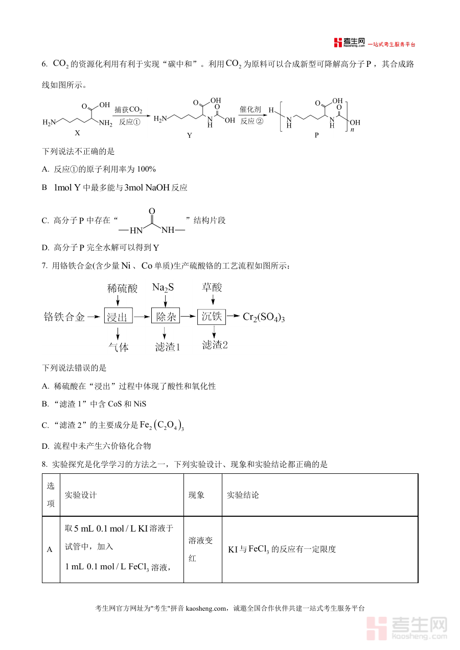 这份资料作为高考备考实用性联考卷,主要用途在于为高三学生提供符合高考化学考试规范与要求的数据素材——包括满分100分、考试用时75分钟等设置,帮助学生熟悉考试作答流程与注意事项;同时也能让教师通过检测结果了解学生当前的知识掌握状况,为后续针对性复习与教学调整提供数据支持,并助力优化整体备考策略方向。