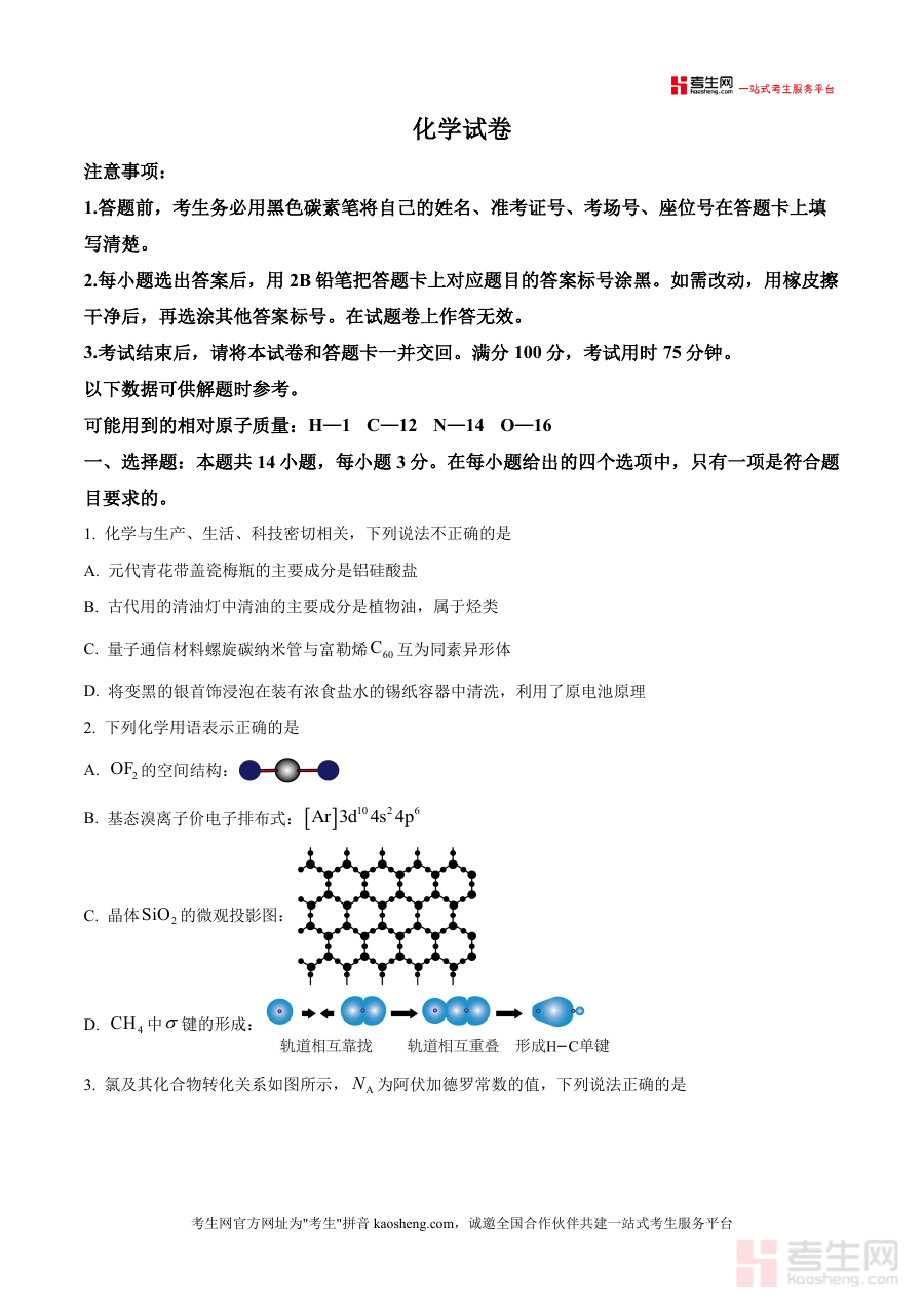 这份资料可用于高三学生熟悉该联考化学试题形式与考试流程,了解答题注意事项及试卷结构,辅助教师开展教学规划与学情检测准备工作,帮助师生明确联考化学考试具体实施规范,为后续备考提供直接参考依据,便于开展模拟联考场景下答题训练与适应性准备,助力师生把握该阶段联考化学考试特点与要求。
