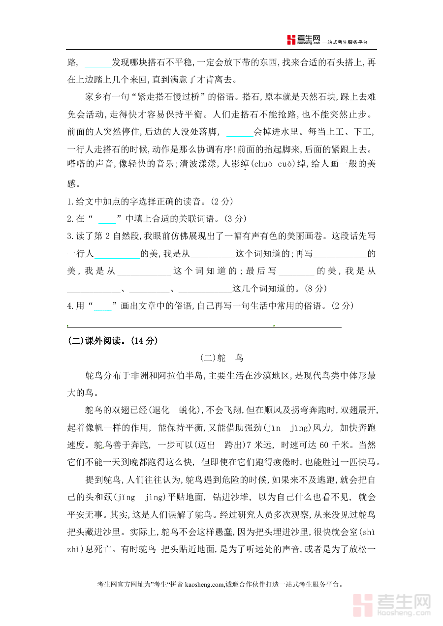 该资料适用于使用人教部编版教材的小学五年级学生、从事小学五年级语文教学工作的教师及参与家庭辅导的家长;作为单元阶段检测资料,其内容贴合教材第二单元教学目标框架,有助于巩固单元核心学习内容衔接,助力师生完成单元学习成果的系统检验与总结环节;对学生而言,可通过自主检测明确学习方向,对教师而言,可借助检测结果优化教学策略。