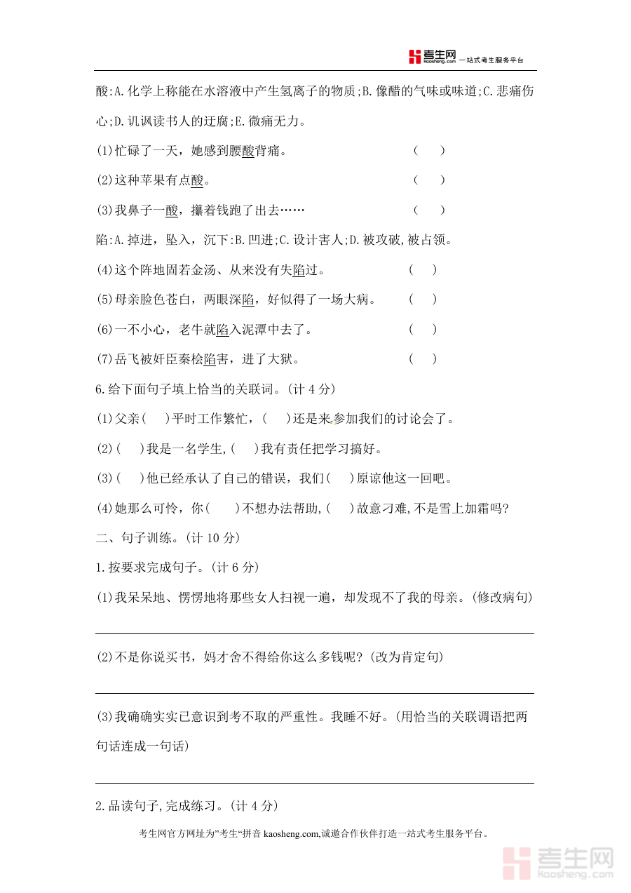 这份资料主要用于五年级学生完成第六单元学习后进行自我检测,帮助学生了解自身对该单元知识的掌握程度;同时也可作为教师开展单元教学效果评估?布置课堂练习或家庭作业的资源,助力教学工作开展与学情精准分析?