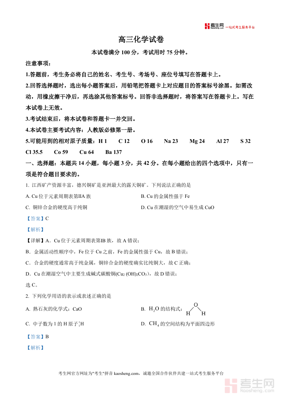 精品解析江西省多校联考20252026学年高三上学。期9月联考化学试题解析版docx是一份针对特定阶段。考试的备考资料核心围绕考试的时间地区与用途展开为考。生提供阶段检测与备考参考这份资料的核心用途在于帮助。对应年级的学生明确学习重点通过阶段考试诊断学情为后。续复习规划提供依据无论是开学摸底阶段检测。