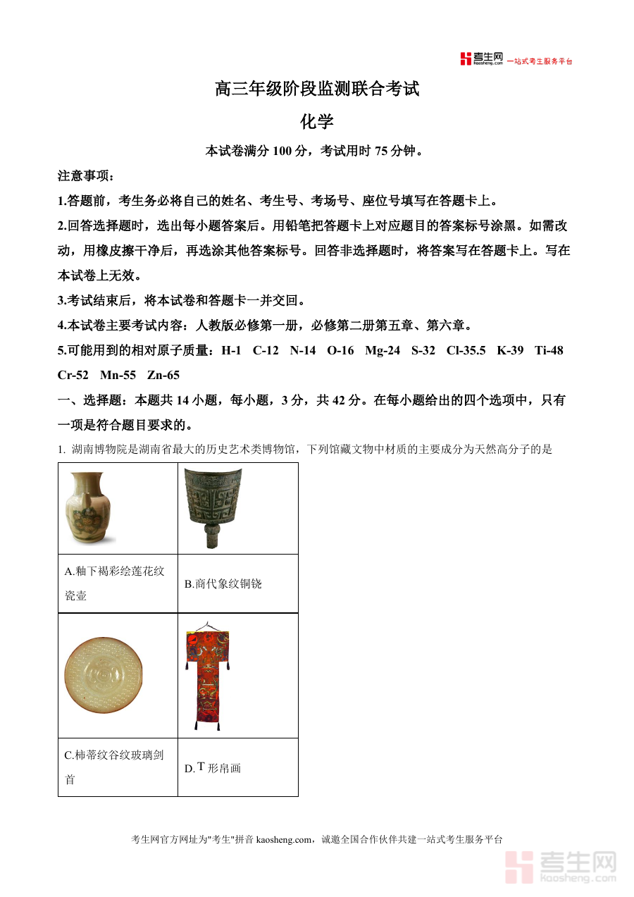 该资料适用人群为湖南省参与此次联合考试的2026届高三学生及化学学科备考辅导人员。作为高三上学期初期阶段检测资料,它具有重要参考价值:学生可借助它熟悉考试形式与要求,巩固所学知识;辅导人员则能利用它开展针对性教学指导,帮助学生更好适应高三阶段学习节奏,为后续系统备考奠定基础,充分发挥阶段检测在教学过程中的诊断与导向作用。