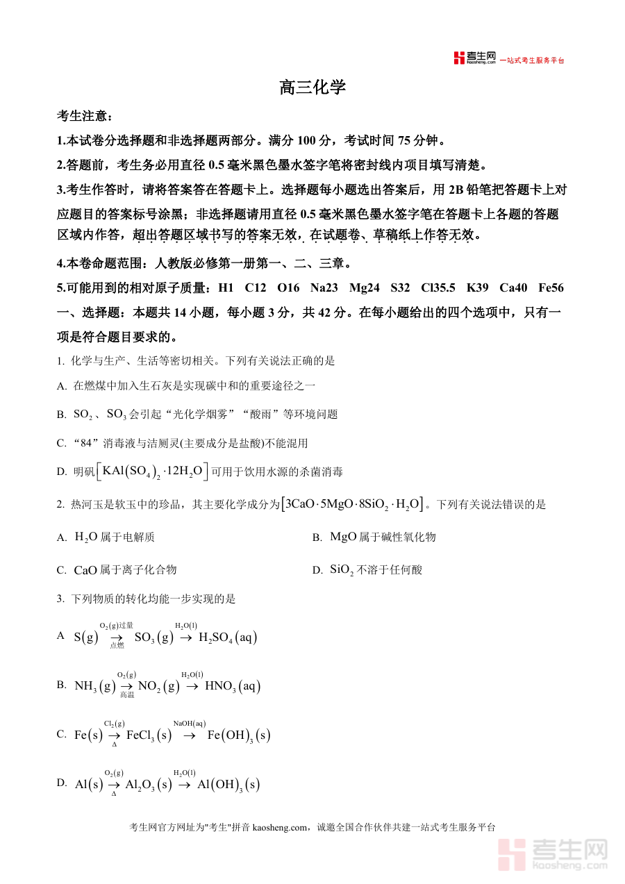 精品解析甘肃省多校20252026学年高三上学期第。二次联考考试化学试卷原卷版docx是一份针对特定阶。段考试的备考资料核心围绕考试的时间地区与用途展开为。考生提供阶段检测与备考参考这份资料的核心用途在于帮。助对应年级的学生明确学习重点通过阶段考试诊断学情为。后续复习规划提供依据无论是开学摸底阶段检。