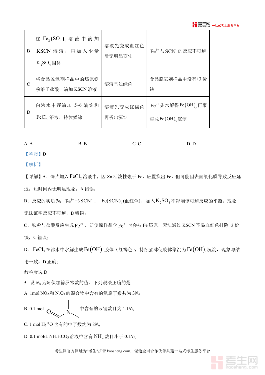 这份资料的核心用途在于辅助使用者完成联考后的学习复盘,包括核对答案以明确答题结果、通过解析理解题目考查方向及解题逻辑,帮助使用者快速定位知识薄弱环节,但不涉及超出试卷范围的额外知识点或题型拓展。其主要价值体现在对本次联考化学科目的阶段性学习效果进行总结,为后续备考计划的调整提供参考依据。