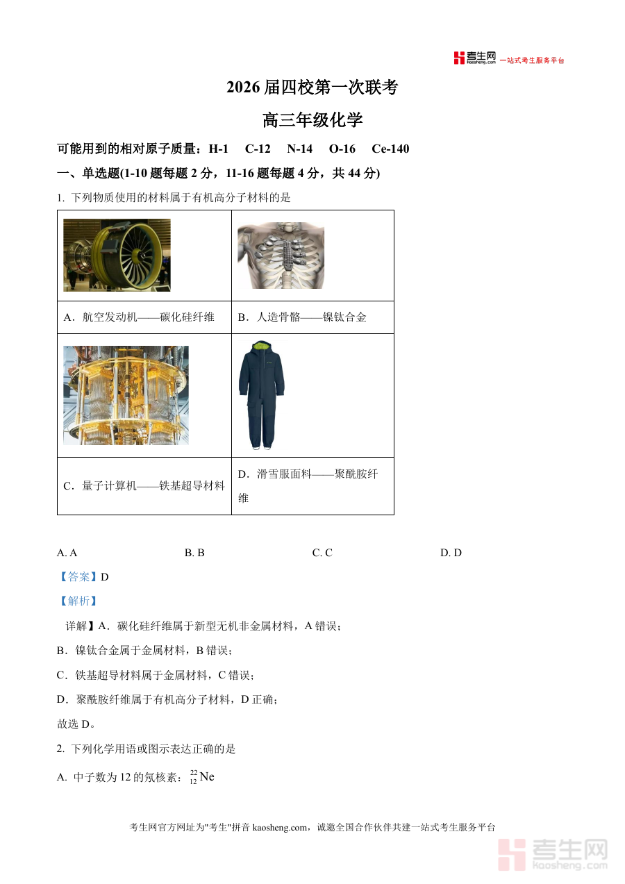 该资料适用于广东省广州市培英中学、珠海市第二中学等四校的2026届高三学生群体,以及其他面临同类阶段性联考任务的高三学生和化学学科教师、备考辅导人员;作为高三上学期首次联考对应的解析资料,它具有反映阶段学习效果、指导后续备考规划重要价值,能够为使用者提供贴合本次联考实际情况的数据支撑与参考依据。