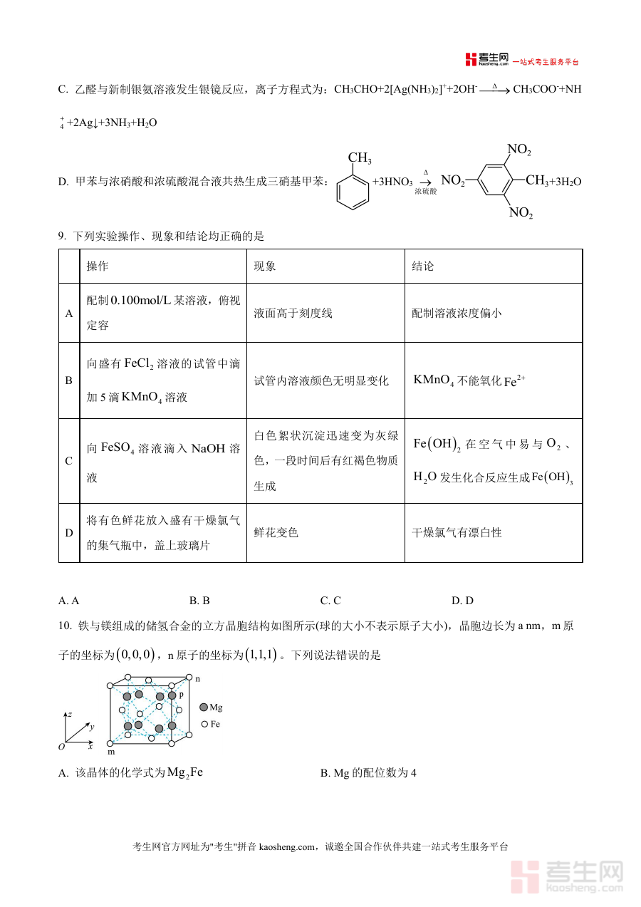 这份资料核心用途在于支持四川省广安代市中学相关师生开展高三上学期阶段化学学科教学与学习活动;对学生而言可作为自我检测工具以了解自身知识掌握程度与应用能力水平;对教师而言则可作为阶段教学效果评估及后续教学计划调整的参考依据;其作为原卷版资料能够提供贴近实际考试形式的数据参考;同时可辅助师生共同把握当前阶段化学学科教学与学习重点方向,并可为后续复习规划制定提供重要参考素材之一;所有表述均严格遵循元信息提取原则,未包含任何编造性内容或具体试题细节相关信息;确保描述客观准确且符合教育类资料专业表述规范要求。