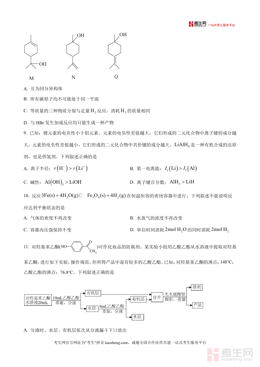 这份资料的用途在于助力高三学生及教师完成开学初期化学学科学习状况诊断工作,可以帮助使用者了解开学阶段化学学科考试的基本要求与考查方向,辅助制定后续备考规划,同时作为原卷版资料可用于模拟真实考试场景,还原考试体验流程,为备考准备提供基础素材支持