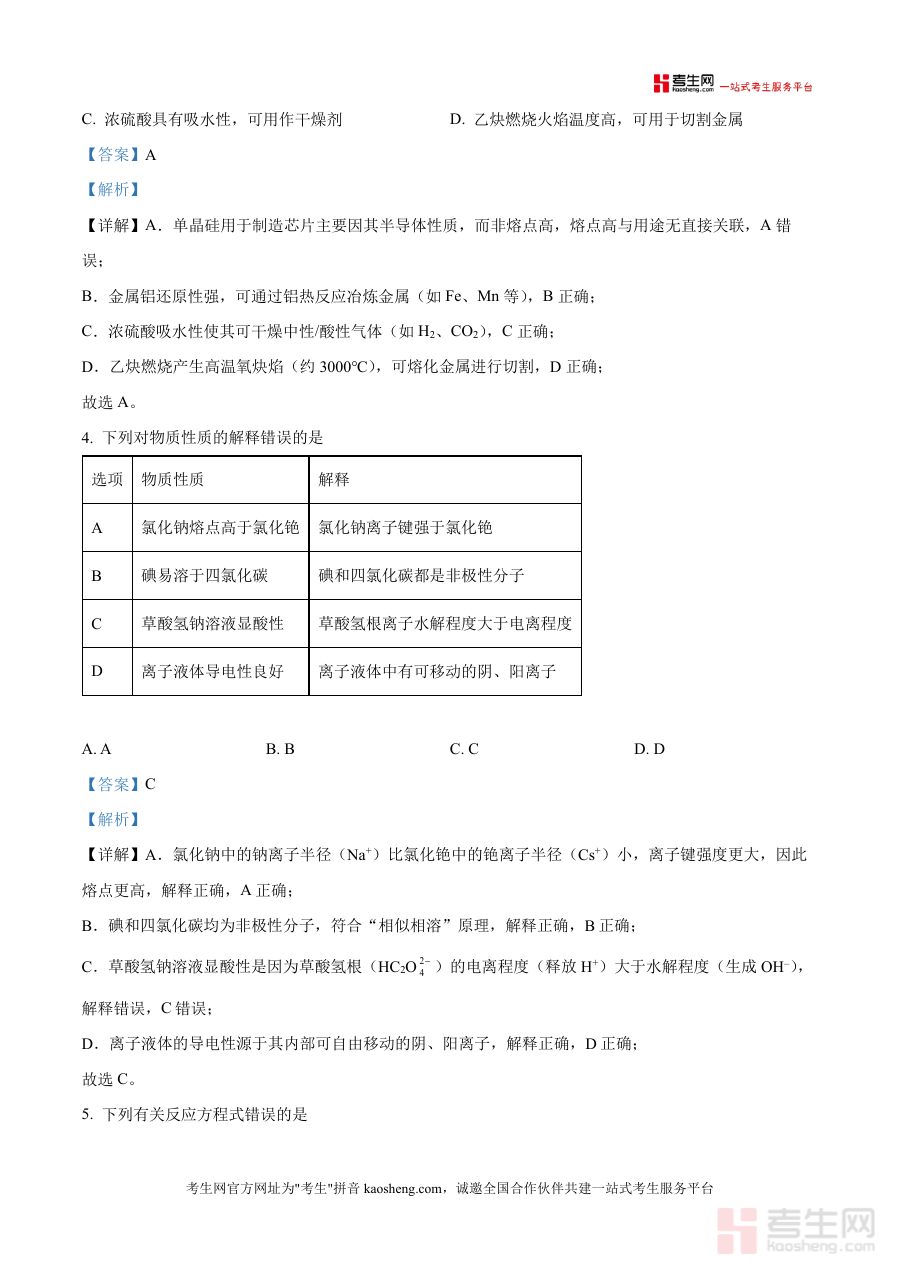 这份资料可用于高三学生在开学阶段进行自我检测与学情诊断:学生通过完成试题并对照解析,能清晰了解自身在化学学科各模块知识上的掌握情况及解题能力水平;同时,备考辅导人员可借助该资料分析考试命题方向与学生常见问题,为后续教学与复习计划制定提供参考依据,提升备考效率。