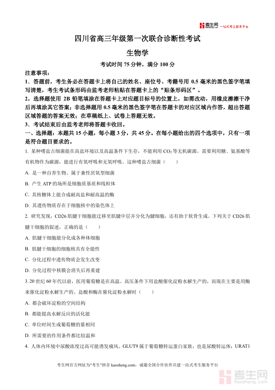 《精品解析:四川省蓉城名校联盟2025-2026学年高三上学期第一次联合诊断性考试生物试题(原卷版).docx》是一份针对2025-2026学年四川省蓉城名校联盟高三上学期第一次联合诊断性考试设计制作的生物学科原卷类备考资料,精准匹配该联盟高三年级上学期初期阶段诊断性考试要求,为师生提供贴合实际考试场景的数据支撑材料,不包含额外解析内容仅呈现原卷形式,便于使用者直接进行模拟训练或教学参考
