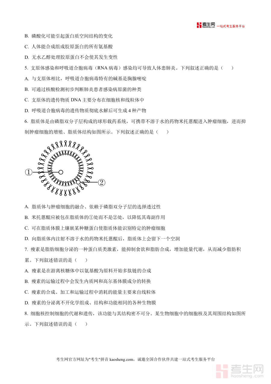 这份资料用途明确:作为高三上学期阶段生物学科适应性测试的原卷载体,帮助学生了解该次考试生物科目的分值分布、题型设置及答题注意事项,用于学生自我学习状况评估与阶段性复习效果检测;同时也可作为高中生物教师开展教学评价与备考指导的参考资源,辅助教师掌握本地适应性考试命题趋势,制定更具针对性教学计划与备考策略,提升教学与备考匹配度。
