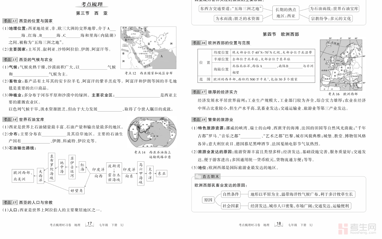 王朝霞初中地理第七章 “梳理式” 诊断卷(二)(湘教版)(七年级下册)紧扣湘教版教材第七章了解地区核心知识点,全面覆盖东南亚、南亚、西亚等重点区域的地理位置、地形气候、河流物产、人文经济等关键考点,采用梳理式命题结构,帮助学生系统梳理知识框架。试卷贴合初中地理考试题型,侧重基础巩固与易错点诊断,助力学生快速定位薄弱环节,强化区域地理理解与记忆,适合同步学习、章节检测与考前查漏补缺,有效提升地理学习效率与应试水平。请添加微信 18617049513 进专属群,获取更多免费资源!