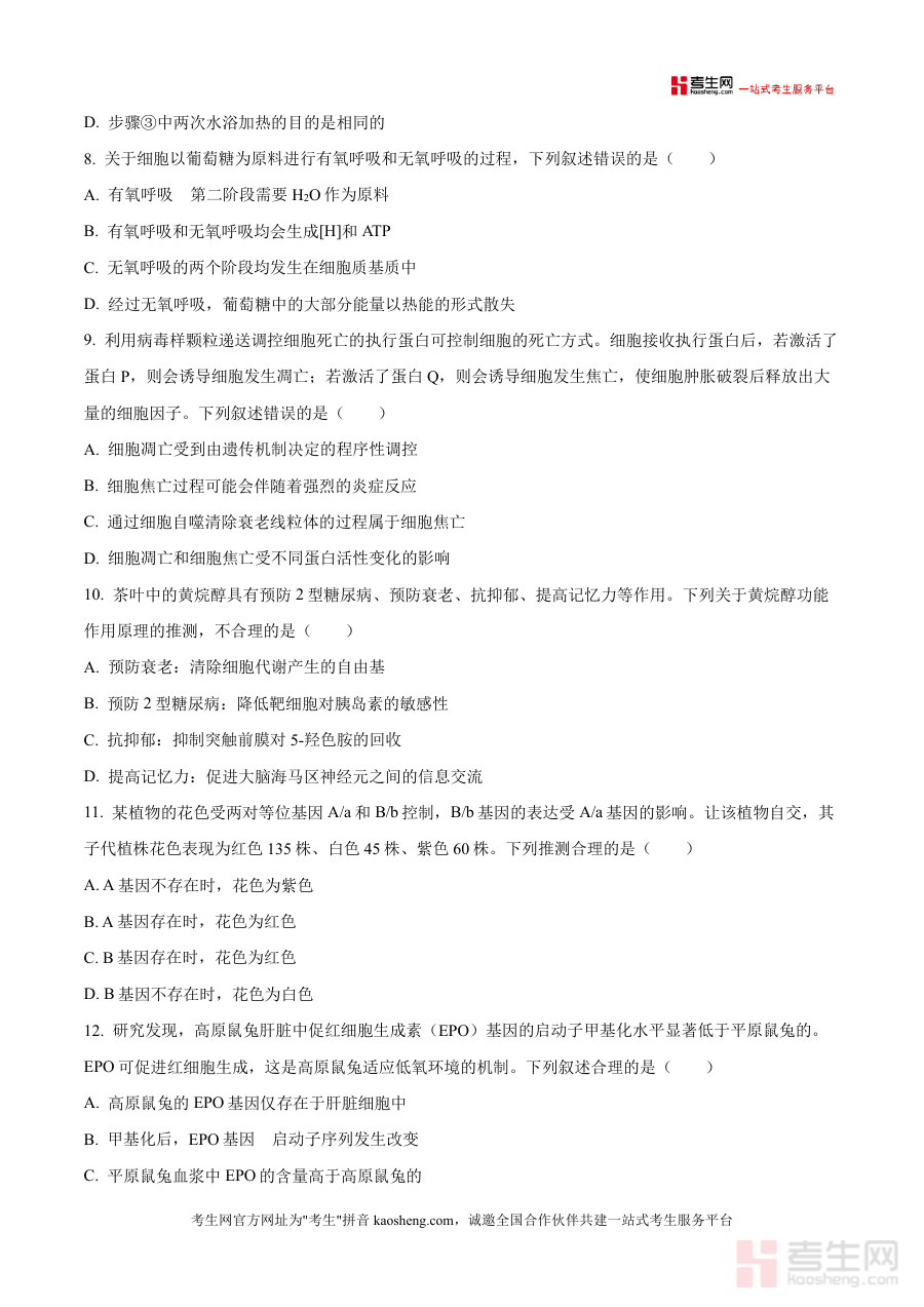 该资料适用于内蒙古地区名校高三学生及生物学科教师群体;学生通过使用该资料可熟悉考试题型与结构特点;明确开学检测考查方向与要求;教师借助该资料可开展标准化教学质量检测活动;为后续教学策略优化提供数据支撑;具有较强针对性与实用价值;能够有效服务于高三生物学科开学阶段教与学;