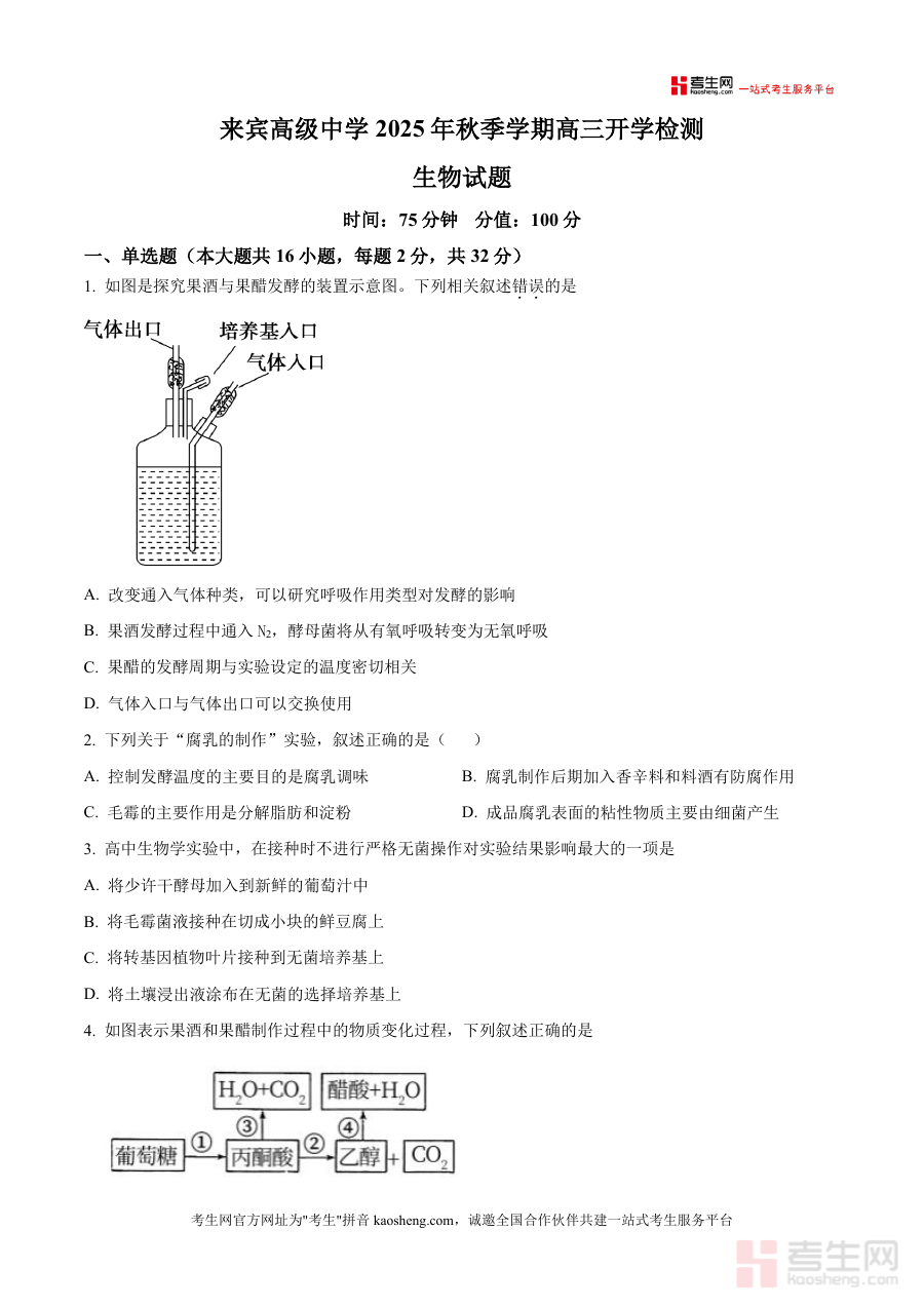 精品解析广西壮族自治区来宾市兴宾区来宾高级中学20。252026学年高三上学期开学生物试题原卷版doc。x是一份针对特定阶段考试的备考资料核心围绕考试的时。间地区与用途展开为考生提供阶段检测与备考参考这份资。料的核心用途在于帮助对应年级的学生明确学习重点通过。阶段考试诊断学情为后。