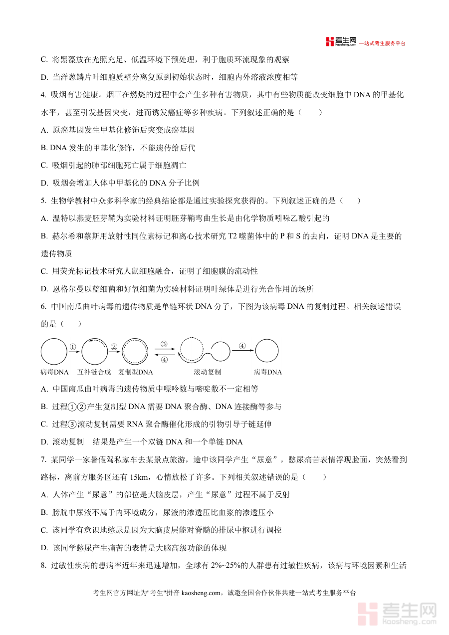 这份原卷版资料可用于高三学生在该阶段测试前熟悉考试时间设置、答题规范及试题呈现方式,帮助学生提前适应考试流程与要求,同时也能为生物学科教师提供真实的阶段测试样卷,辅助教师开展考前指导与考后分析工作,是衔接高三生物阶段性学习与评估环节的重要工具.