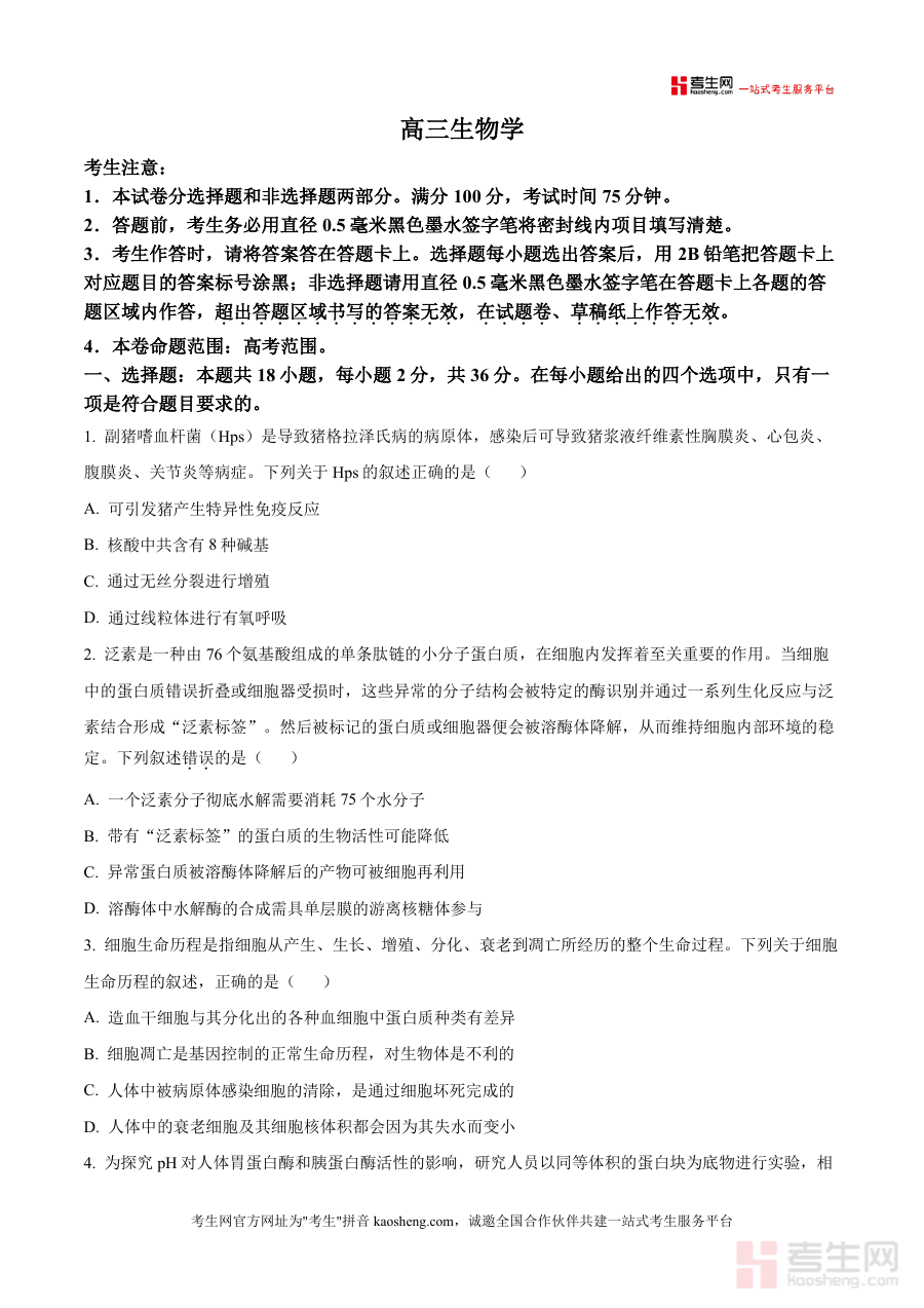 《精品解析:湖北省武汉市九师联盟2025-2026学年高三上学期8月开学生物试题(原卷版).docx》是一份针对湖北省武汉市九师联盟组织开展的2025-2026学年高三上学期8月开学阶段生物学科考试的备考资料。该资料对应高三年级开学初期进行生物学科测试,符合高考命题范围要求,为学生和教师提供开学阶段生物学科学习情况检测所需素材,是高三生物备考体系中开学阶段的重要参考资料之一。