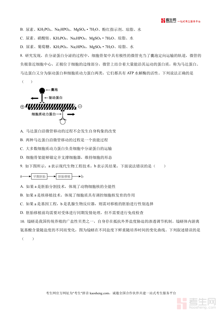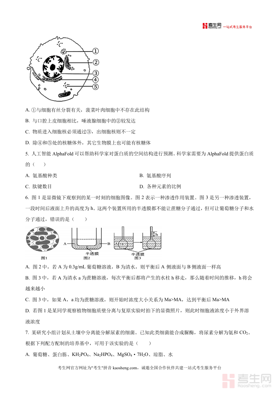 这份资料主要用于高三学生熟悉该次月考生物学科测试 的试卷结构与考试要求,辅助教师开展针对该次月考结果分析及后续教学策略调整工作,同时可为同类学校或同阶段学生提供参考性原始试卷素材,助力使用者把握阶段性学习目标达成情况,为后续复习规划与教学安排提供依据,满足师生对该次月考原始试卷资源 的实际需求,支持教学评估与备考准备环节有序开展。